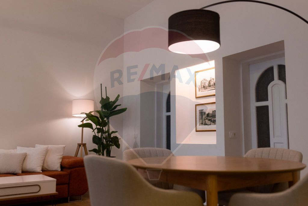 Vă prezintăm spre închiriere un apartament deosebit cu 4 camere, situat pe strada Evreilor Deportați, în zona ultracentrală a orașului Oradea – la doar 2 minute de Piața Unirii. Proprietatea se află într-o clădire istorică complet restaurată, cu arhitectură deosebită și atmosferă aparte. Apartamentul este situat la etajul 1 și beneficiază de acces la curtea comună, precum și de o mică terasă amenajată chiar la intrare – locul perfect pentru cafeaua de dimineață sau un moment de relaxare. Interiorul a fost renovat complet, fiind refăcută instalația electrică și sanitară, izolată termic și finisată cu materiale de cea mai bună calitate. Se închiriază complet mobilat și utilat, pregătit pentru mutare imediată. Compartimentarea este excelentă: - living spațios open-space cu bucătărie și zonă de dining, - cămară pentru alimente și spațiu de depozitare, - dormitor matrimonial luminos, - baie modernă, cu duș și încălzire în pardoseală, - două camere suplimentare, ideale pentru birou, camere pentru copii sau hobby, Confortul este completat de dotări moderne: mașină de spălat rufe, cuptor, plită, hotă, cuptor cu microunde, aer condiționat, aspirator, centrală pe gaz cu control smart prin aplicație. Un element distinctiv este sistemul audio-video premium: home cinema cu sistem de sunet Dolby Surround, proiector cu Bluetooth și ecran de proiecție motorizat, pentru o experiență ca la cinema, chiar acasă. Apartamentul este impecabil, modern, cu personalitate, potrivit pentru o familie sau persoane care apreciază confortul, stilul unic și poziționarea ultracentrală. Te invităm să programezi o vizionare pentru a descoperi personal atmosfera și calitatea fiecărui detaliu.