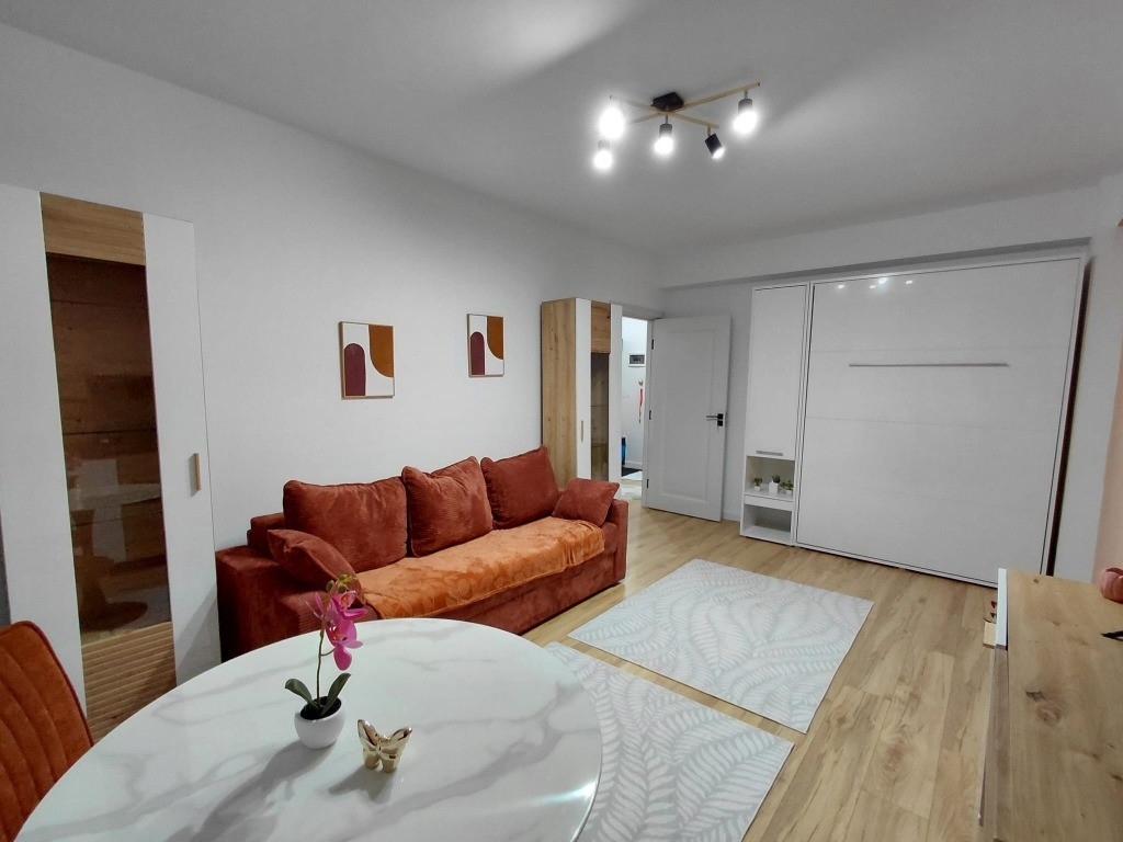 Inchiriere Apartament 1 camera decomandat, se afla la Prima Inchiriere, imobil nou, finisaje noi, mobilier si electrocasnice in garantie! Totul este nou! Nu se accepta cu animale de companie, se doreste 1-2 persoane, cuplu. Se ofera 1 loc de parcare subteran ( la blocul de vis-a-vis). Detalii apartament: Locatie Floresti, zona Terra, parter din 3; orientare vestica; balcon aprox.3 mp ( masa si scaune) Compartimentare: hol, bucatarie separata, camera de zi, baie si balcon; incalzire prin centrala termica proprie si calorifere, termostat. Suprafata utila 37 mp+balcon 3 mp; finisaje noi moderne, mobilier si electrocasnice noi in garantie. Electrocasnice: plita, cuptor, hota, frigider, masina de spalat rufe; in camera de zi este canapea extensibila dar si pat matrimonial integrat in mobilierul vertical,masa si scaune, mobilier hol, bucataria complet mobilata si utilata. Pret de inchiriere 1600 lei/luna, garantie 1 luna si include locul de parcare subteran. Se intermediaza prin Agentia Record Imobiliare comsion 50%.
