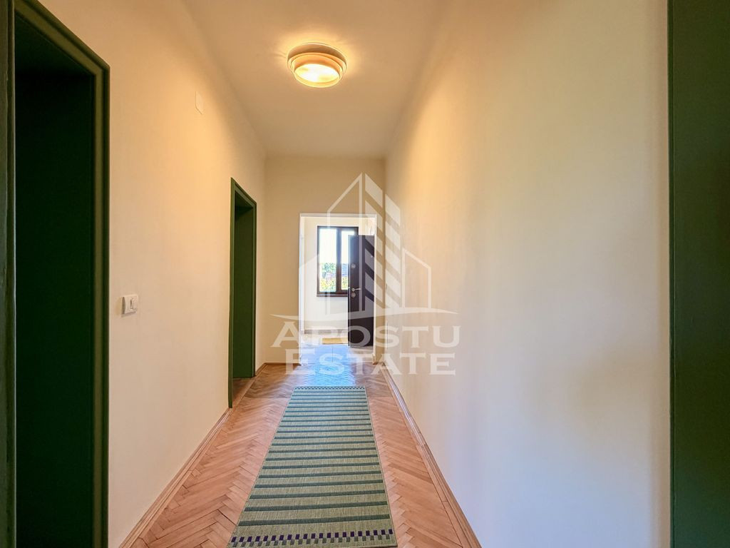 Apostu Estate va propune la prima inchiriere un apartament spatios si renovat cu bun gust, situat la etajul 2 (bloc P+2+M), intr-o zona linistita, cu curte comuna mare si verdeata. Aleea este inchisa, vecinii sunt prietenosi. Parcul Rozelor la 10–12 min de mers pe jos. Compartimentare: -Hol de acces larg; -Bucatarie mobilata si utilata cu geam mare pentru mai multa lumina; -Dormitor mobilat, fara saltea; - Baie cu cada vintage reconditionata; - Living cu canapea extensibila, confortabila. Dotari: parchet din stejar reconditionat, geamuri mari, tamplarie noua, centrala termica, usa metalica, multe prize. Bucataria este dotata cu aragaz si cuptor cu microunde. Avem masina de spalat rufe. Apartamentul are lumina naturala frumoasa si o atmosfera foarte primitoare. Se inchiriaza doar pe termen lung. Nu se accepta animale de companie. Se cere o luna de chirie in avans si garantie echivalentul unei chirii.
