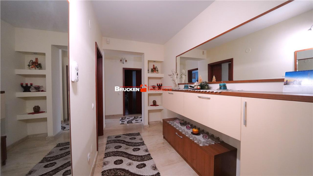 Iata o locuinta, ce insumeaza o suprafata totala de 324 mp, pe care rar ai ocazia sa o intalnesti, iesita din tipare si perfecta pentru cei care isi doresc mai mult decat un simplu spatiu de locuit! Apartamentul cu tripla orientare Est-Sud-Vest, este compus din doua dormitoare, fiecare cu farmecul sau: unul beneficiaza de dressing si baie proprie, iar celalalt te invita spre o terasa perfecta pentru momente de relaxare. Spatiul central, un living generos cu open kitchen, iti ofera cadrul ideal pentru serile petrecute cu cei dragi. In plus, o a doua baie si un hol primitor intregesc aceasta locuinta bine gandita, toate insumand o suprafata utila de peste 96 mp. Dar ce face acest apartament cu adevarat deosebit sunt terasele sale, adevarate oaze de relaxare. Din interior, pasesti catre o terasa inchisa, de 46 mp, amenajata cu ferestre termopan si profil de aluminiu, unde incalzirea si apa sunt deja trase, astfel incat iti poti indeplini visul de a avea un jacuzzi personal. Mai departe, terasa deschisa se dezvaluie ca o gradina privata, avand o suprafata de 157 mp, cu pomi ornamentali, insulite artificiale si o fantana arteziana. Gazonul impecabil este intretinut de un sistem automat de irigare, programabil. Instalatiile electrice sunt deja pregatite, oferindu-ti libertatea de a crea un spatiu personalizat dupa dorintele tale. Si daca mai ai nevoie de un colt retras, balconul acoperit ce se deschide din living, adauga un plus de intimitate acestui camin. Situat la etajul 1 al unui imobil din apreciatul cartier Luceafarul, acest apartament beneficiaza de o pozitie de exceptie. La doar cativa pasi de centrul orasului, te bucuri de acces rapid la principalele bulevarde, scoli de renume, institutii importante si toate serviciile de care ai nevoie zi de zi. Este locul perfect unde confortul modern si accesibilitatea intalnesc un strop de liniste si rafinament. Pe langa toate acestea, apartamentul este dotat cu sisteme de alarma antiefractie si vine cu posibilitatea de a achizitiona doua locuri de parcare in subteran si doua boxe pentru depozitare. Acestea aduc nu doar un plus de functionalitate, ci si o nota de eleganta unui stil de viata care cere ordine si spatiu.