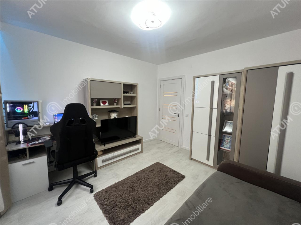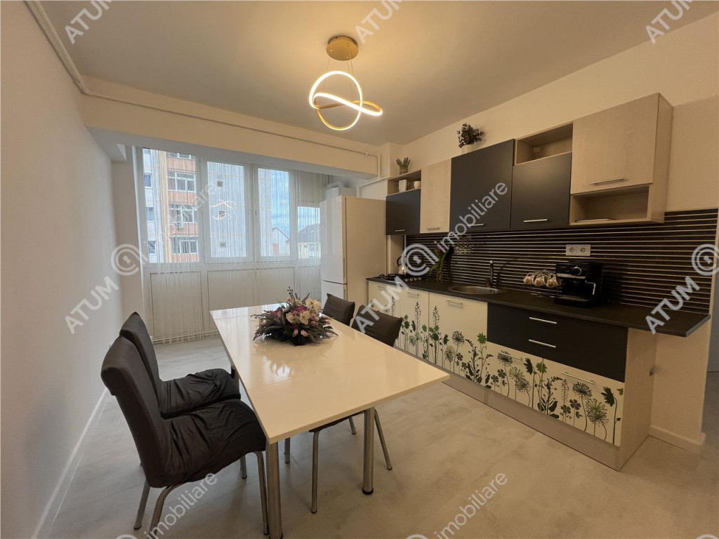 De vanzare apartament complet renovat in 2026 cu 3 camere decomandate, complet mobilat si utilat situat in zona Vasile Aaron-Semaforului din Sibiu. Apartamentul este situat la etajul intermediar 5 al unui imobil cu 10 etaje si doar 4 apartamente pe nivel. Imobilul dispune de lift nou, izolatie termica exterioara si usa de acces nou din PVC izolatoare termic si fonic cu inchidere electromagnetica si interfon cu cartela. Locuinta masoara suprafata de 71 mp utili, acesta fiind compus din 2 dormitoare spatioase, camera de zi, bucatarie este spatioasa datorita faptului ca balconul este inchis si fiind parte integrata din aceasta, baie moderna cu geam de aerisire si cada, zona de primire amenajata cu pantofar si cuier, o camara sau debara spatioasa amenaja cu polite destinata depozitarii. Apartamentul beneficiaza de renovare integrala in 2026 si include: instalatie electrica si termica noua din cupru, instalatia sanitara a fost inlocuita, tamplarie PVC cu geam termopan cu 5 camere ventilatoare si 2 foi de sticla, centrala termica proprie nou marca Vaillant si calorifere din otel termostatate, usi interioare din lemn marca Naturen, usa metalica de acces, corpuri moderne de iluminat LED, prize si intrerupatoare marca Schneider, pardoseala apartamentului este placata cu placi din SPC waterproof si gresie in baie, obiecte sanitare incastrate, peretii din baie placati cu faianta, peretii tencuiti-gletuiti si zugraviti in vopsea lavabila alba. Predarea apartamentului se face complet mobilat si utilat si include mobilierul de bucatarie si electrocasnicele, camera de zi amenajata cu canapea extensibila si mobilierul specific livingului cu multiple spatii de depozitare, un dormitor mobilat cu canapea extensibila si dulapuri, baia complet echipata. Valoarea de achizitie este de 135.000 euro negociabil, acesta poate fi achizitionat si prin accesarea unui credit bancar. ID intern: 3324.