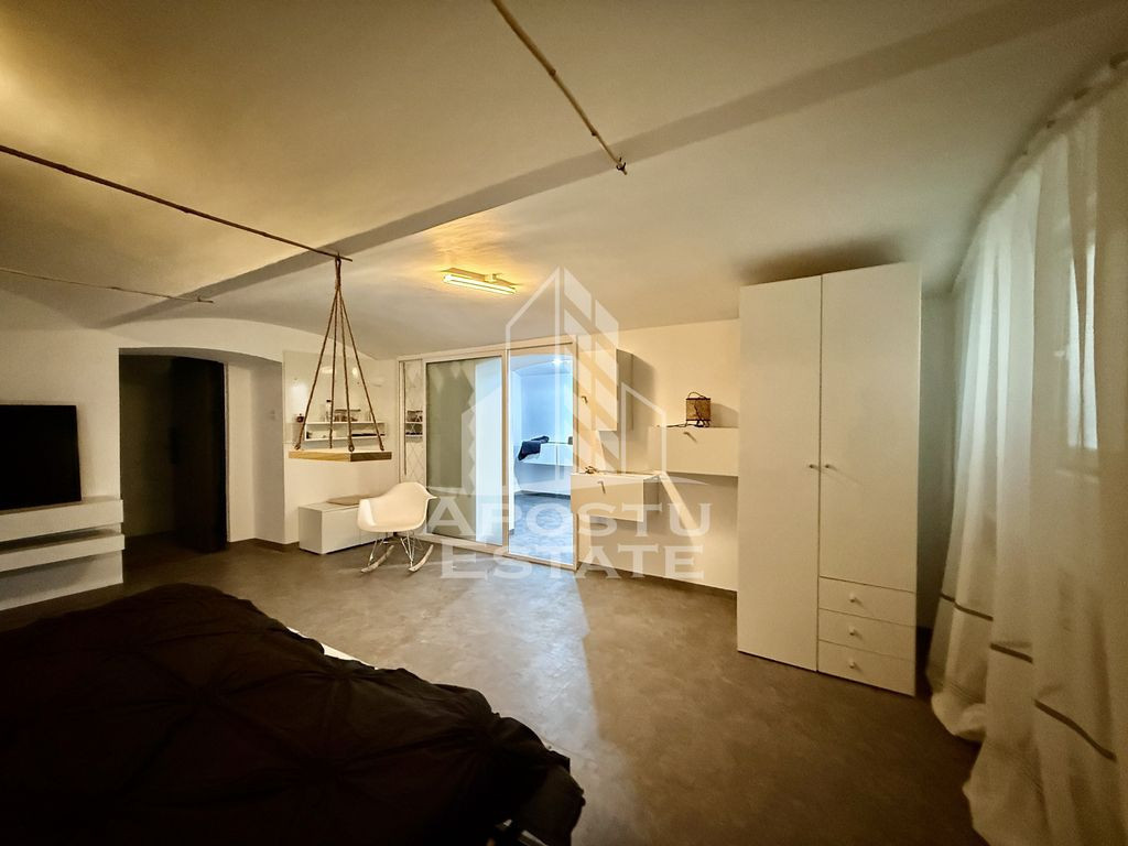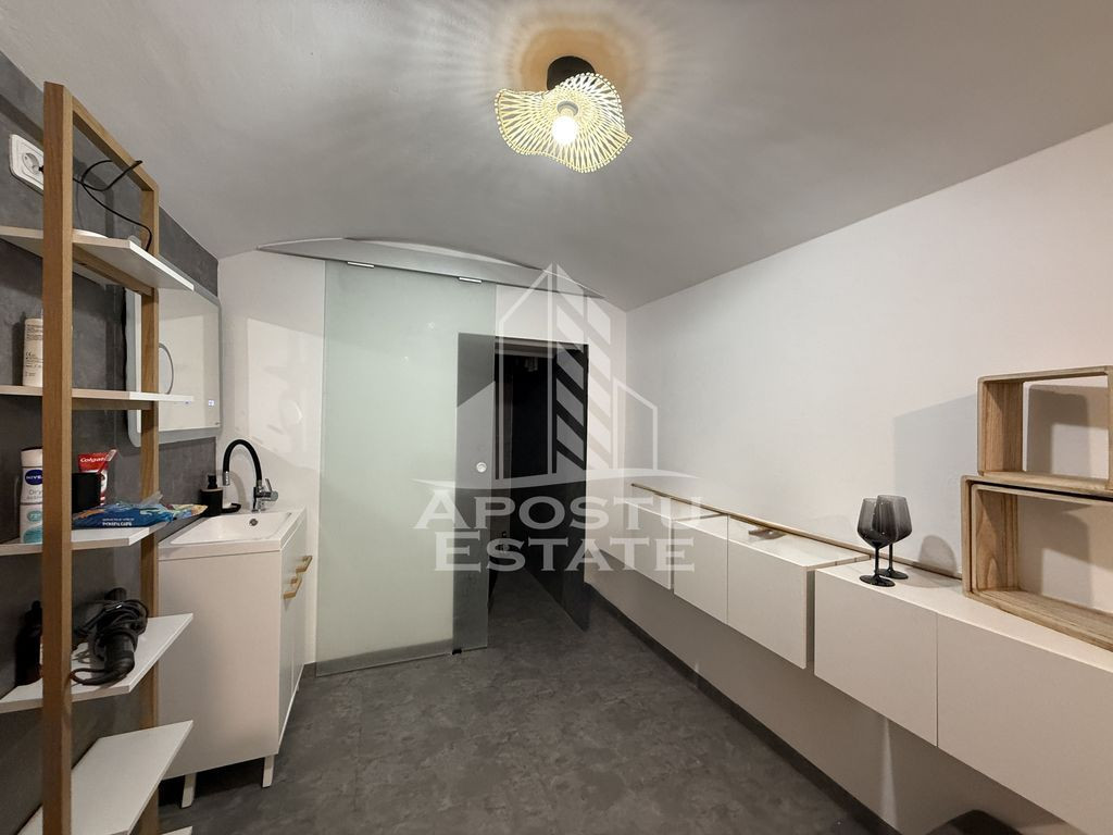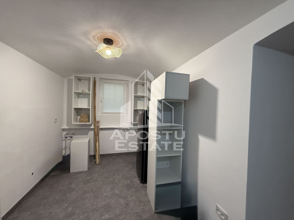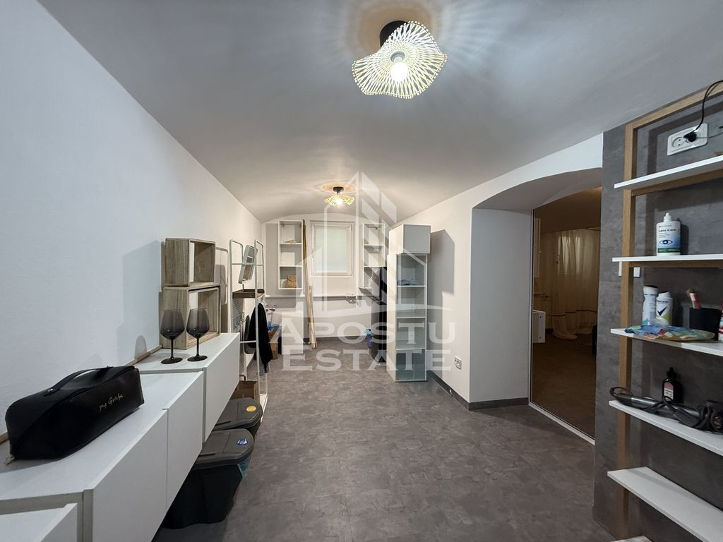 APOSTU ESTATE propune spre vanzare un apartament cu 1 camera, 2 bai si bucatarie, situat in zona Traian - Piata Romanilor din Timisoara. Proprietatea este complet renovata in anul 2025 si se remarca prin finisaje de calitate, compartimentare functionala si locatie excelenta. Apartamentul este ideal atat pentru locuit, cat si pentru investitie imobiliara, datorita cererii ridicate din zona si accesului facil la mijloace de transport, magazine, scoli, restaurante si alte puncte de interes urban. Proprietatea beneficiaza de o cota parte de 18mp, din curtea imobilului, care poate fi amenajata dupa dorintele noilor proprietari. Locuinta beneficiaza de o renovare totala, realizata in 2025. Instalatiile electrice si sanitare au fost complet inlocuite, iar peretii sunt ventilati, fara urme de umiditate sau igrasie. Geamurile termopan asigura un nivel ridicat de izolare fonica si termica, iar pardoseala din vinil confera un aspect modern si este usor de intretinut. Compartimentarea este practica, cu o camera spatioasa, doua bai si bucatarie, ceea ce ofera un confort superior fata de garsonierele clasice. Apartamentul se vinde fie mobilat si utilat complet, fie nemobilat, in functie de preferintele cumparatorului. Este o alegere excelenta pentru cei care cauta o locuinta moderna, usor de intretinut si amplasata intr-o zona cu acces rapid spre centrul orasului. De asemenea, este potrivit pentru investitori, datorita randamentului bun pe termen lung. Pentru mai multe detalii sau pentru a programa o vizionare, va invitam sa ne contactati.