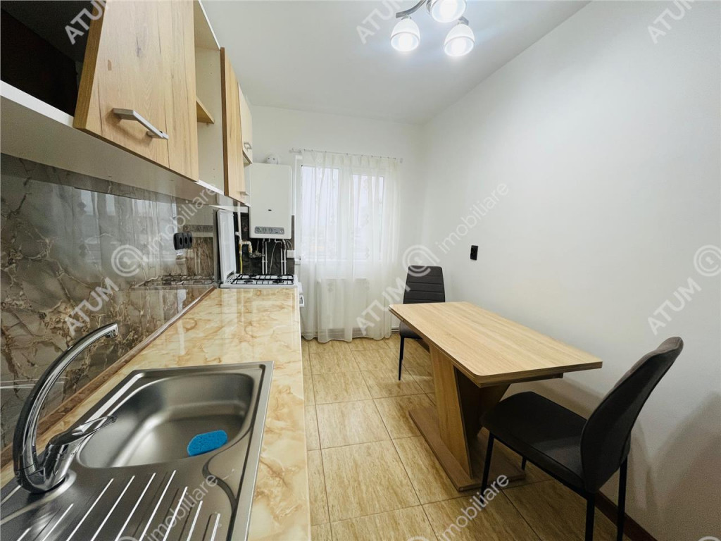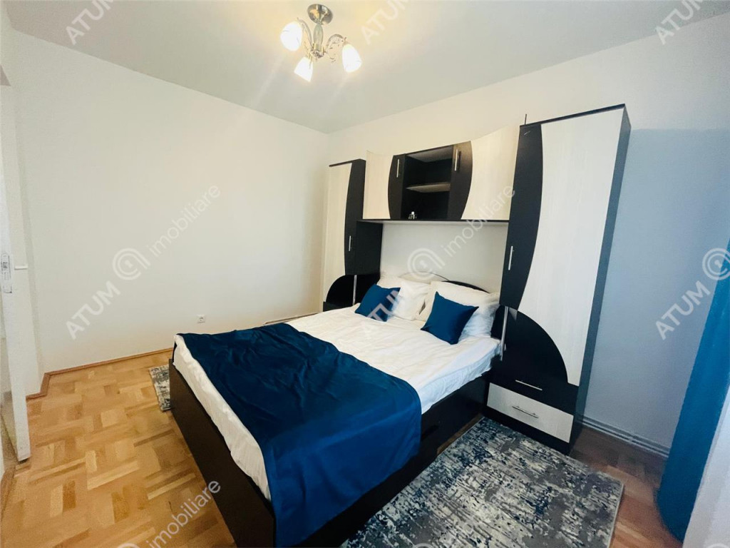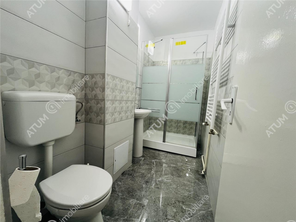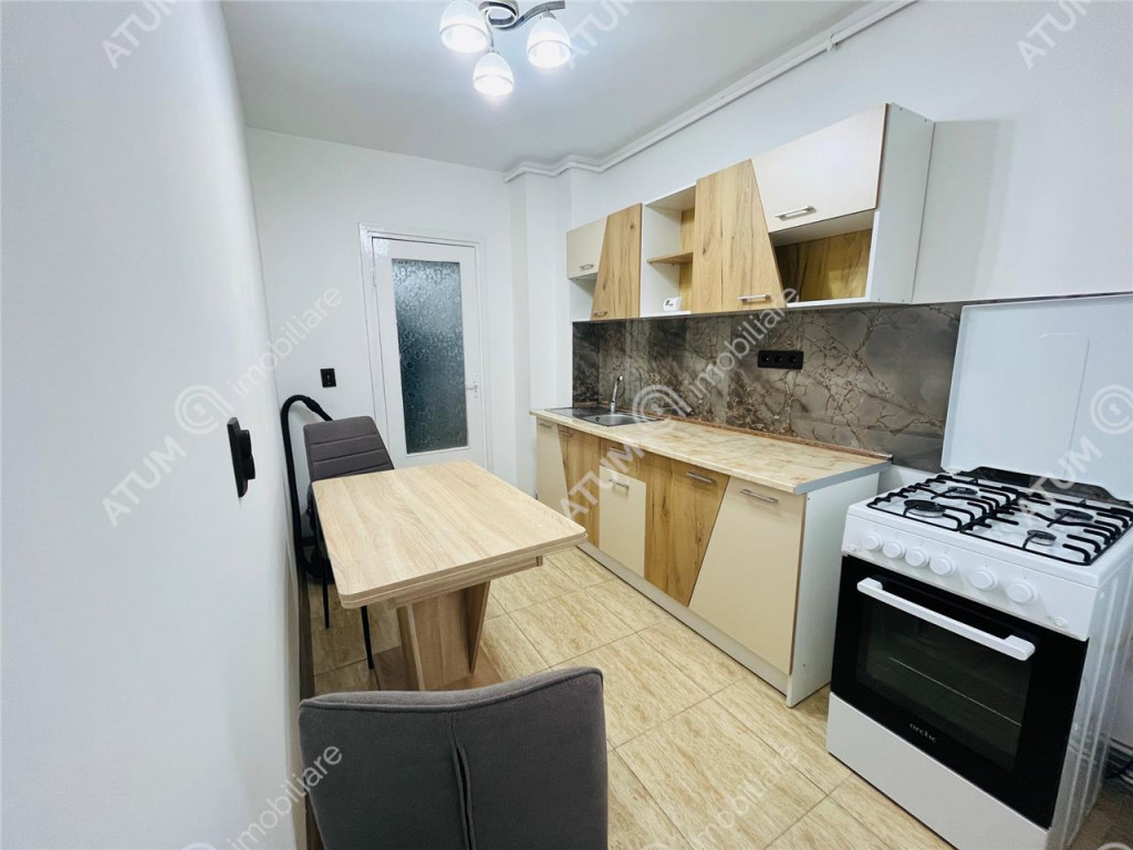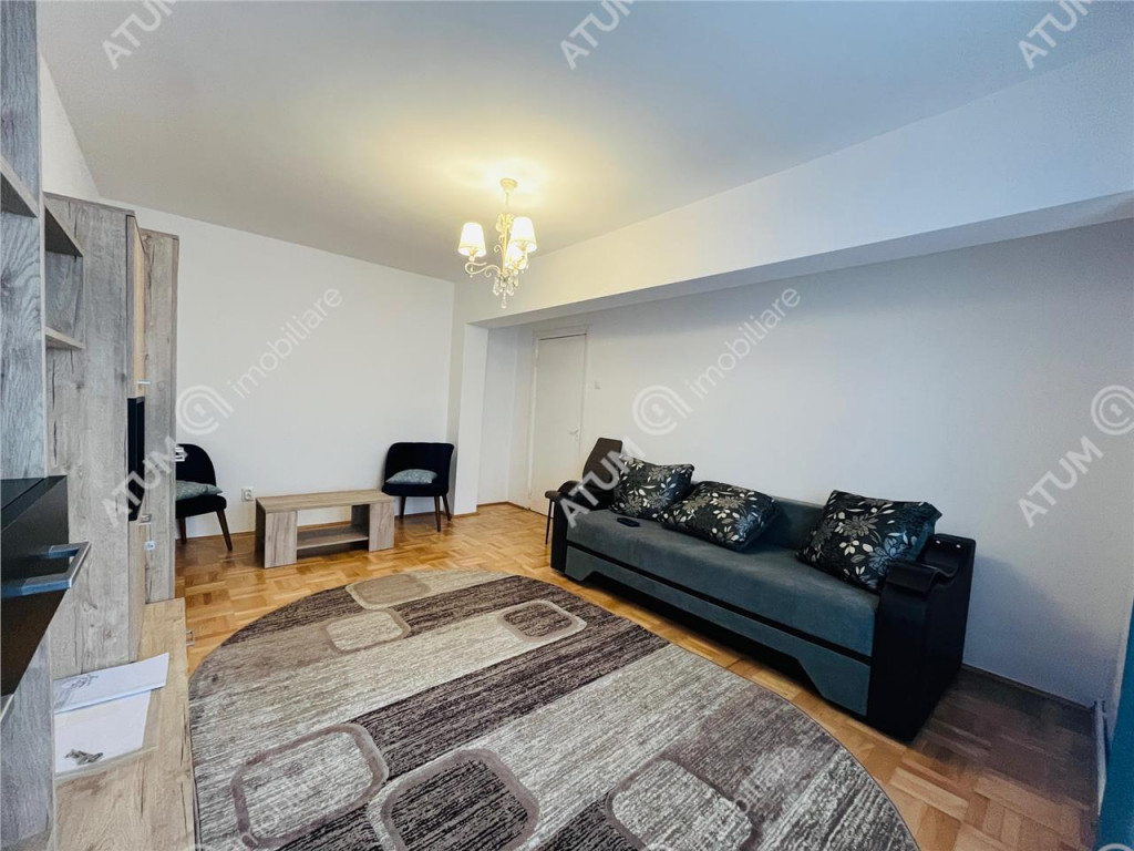 De inchiriat apartament complet renovat de 2 camere decomandate cu balcon inchis si pivnita de 7,5 mp, orientare Vestica, pozitionat la etajul intermediar 3, in zona Strand 1 din Sibiu. Apartamentul se afla la etajul 3, al unui imobil edificat in jurul anului 1980, pe structura din beton armat si zidarie din caramida, compus din P 4 Etaje, acesta beneficiind de izolatie termica exterioara, acoperis din tigla si interfon pentru accesul securizat al locatarilor in imobil. Locuinta in suprafata de 50,50 mp utili, dispune de o compartimentare practica si face din acest apartamnet o locuinta luminoasa si aerisita. Apartamentul este compus din camera de zi 17,4 mp, dormitorul de 11.00 mp cu acces in balconul tip logie inchis in tamplarie PVC cu geam termopan, unde se afla si un spatiu destinat depozitarii, bucataria separata de 7,62 mp, baia de 3,92 mp, dotata cu cabina de dus si holul generos de 7,50 mp, care este dotat cu zona de primire amenajata cu pantofar si cuier si un spatiu de depozitare in care este amplasata masina de spalat rufe. Separat de suprafata utila, apartamentul mai detine si o pivnita uscata de 7,50 mp. Renovarea apartamentului a fost realizata in anul 2024 si i au fost aduse imbunatatiri precum: instalatie electrica din cupru cu tablou general pentru consumatorii de putere, geamuri termopane cu tamplarie PVC, pardoseala placata cu parchet din lemn masiv de stejar si gresie, iar in bucatarie si baie, faianta aplicata pe pereti, prize-intrerupatoare marca Schnaider, peretii gletuiti si zugraviti in vopsea lavabila alba. Printre dotarile si amenajarile apartamentlui, acesta beneficiaza si de: centrala termica cu calorifere din otel termostatate si senzor de gaz, usi interioare din lemn masiv, usa metalica de acces. Apartamentul se preda complet mobilat si utilat, cu mobilier de bucatarie realizat pe comanda, mobilier de living care include canapea si mobilier cu numeroase spatii de depozitare, dormitorul complet amenajat si baia dotata ca atare. Zona in care se afla apartamentul este una facilitata, datorita multitudinii punctelor de interes, aflate la maxim 5 minute de mers pe jos, precum: supermarket-uri( Kaufland, Penny, Lidl), numeroase statii de transport in apropiere, institutii de invatamant , institutii bancare, farmacii, locuri de joaca pentru copiii. Valoarea de inchiriere al acestui apartamnet este de 350 de euro/luna garantie.ID intern: 2162.