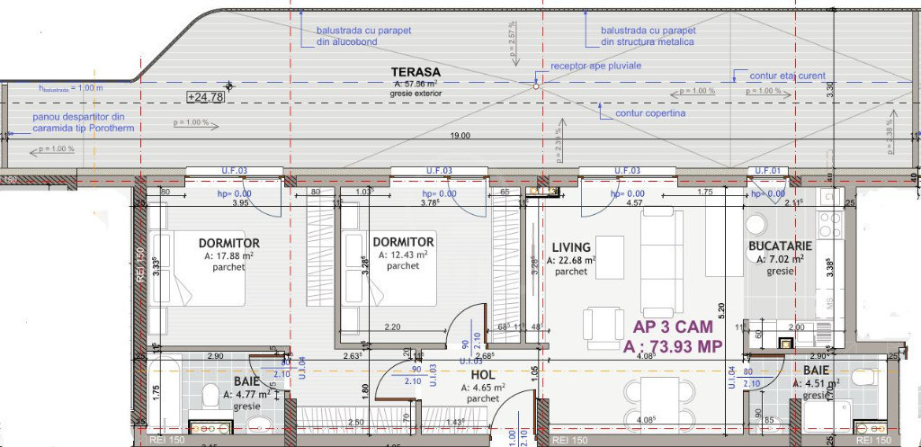Această ofertă reprezintă oportunitatea de a achiziționa un apartament tip penthouse deosebit, situat într-o construcție nouă, în Florești, zona Eroilor, aproape de centrul localității. Apartamentul cu 3 camere se află la etajul retras al unui imobil cu regim de înălțime D P 7E Er și este ideal pentru cei care își doresc confort, intimitate și priveliște. Cu un design modern acest penthouse oferă o locuință semidecomandată, dotată cu centrală proprie și încălzire în pardoseală pentru un plus de confort pe tot parcursul anului.Spațiul este organizat eficient, incluzând un hol de intrare, un living luminos cu bucătărie open space, o baie, două dormitoare, dintre care unul matrimonial cu baie și dressing propriu, pentru a asigura un confort desăvârșit. Un alt avantaj important este terasa generoasă de 58 de metri pătrați, perfectă pentru momente de relaxare în aer liber, cu o orientare spre vest, ceea ce garantează apusuri spectaculoase.Imobilul mai dispune de facilități moderne, precum două lifturi, interfon și acces la toate utilitățile necesare. Locuința este perfectă pentru cei care își doresc un trai confortabil și modern, într-o zonă liniștită și totuși aproape de centru. PRETUL INCLUDE TVA, iar pentru mai multe detalii sau pentru a programa o vizionare, nu ezitați să contactați agenția EDIL Florești, situată pe Str. Eroilor, Nr. 25, Ap. 15 (et. 1), Florești. APCJ246300