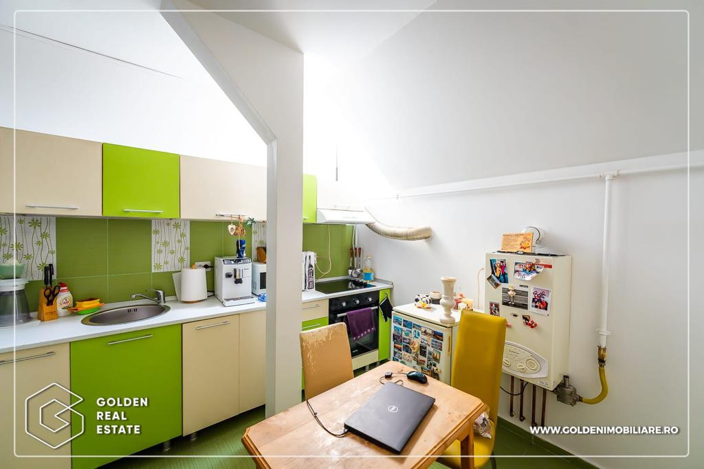 P: 9180 Golden Real Estate vă propune un apartament minunat la mansardă cu 2 camere, cu un spațiu util de locuit de 51,26 mp. Apartamentul dispune de un dormitor spațios, o bucătărie open space, un living cu balcon închis, aer condiționat și centrală proprie. Imobilul are acces facil la supermarketuri, restaurante, transport public, bănci și spitalul Județean. Preț: 67.900 euro. Agent Golden Real Estate Id intern: P9180