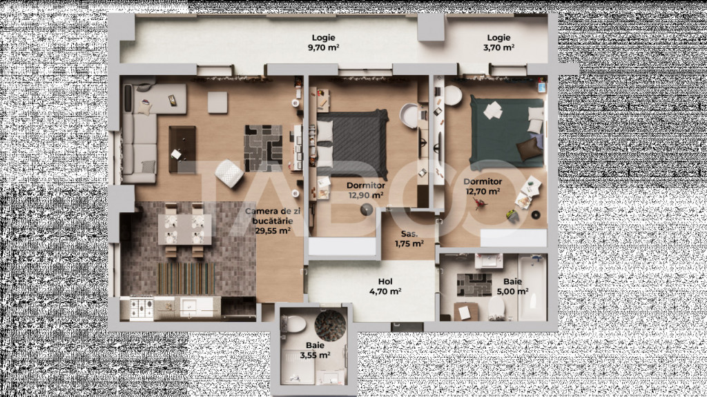 Comisionul dumneavoastra este 0 la acest apartament luminos si spatios de vanzare in Sibiu, cu 3 camere situat in zona Calea Surii Mici, amplasat la etaj intermediar 1 intr-un imobil cu 6 etaje, cu suprafata construita de 98 mp si suprafata utila 70 mp. Apartamentul este compartimentat decomandat si este compus din: 2 dormitoare incapatoare, 1 living cu bucatarie open space, 2 bai spatioase si un 2 balcoane cu suprafata de 14 mp ce ofera o priveliste deosebita. Cladirea in care se afla amplasat acest apartament este de tip bloc, construit in anul 2025 cu structuri solide de rezistenta pe cadre, cu stalpi si grinzi din beton armat. Peretii exteriori si cei interiori au fost realizati cu zidarie din caramida Porotherm Wienerberger cu grosimea de 30 cm la exterior si intre apartamente iar zidurile de compartimentare cu caramida de 25 si 12 cm. Aceasta dispune de un grad inalt de eficienta energetica si este izolata termic cu polistiren de 10 cm cu densitatea EPS 80. Tamplaria exterioara instalata la locuinte are profil PVC de la Salamander, cu 5 camere si 3 foi de sticla, glafuri de aluminiu exterior si pvc interior. Balcoanele sunt cu tencuiala decorativa, inchise in caramida si sticla securizata, placate cu gresie. Casa scarii dispune de acces securizat, scarile placate cu gresie, plafoniere LED cu senzori de miscare si zugraveli in lavabila alba. Apartamentul se vinde la stadiul de "alb" si beneficiaza de: - un loc de parcare suprateran inclus in pret; - Usa metalica antiefractie de acces; - PVC Salamander cu geam termopan Low-E cu 3 foi de sticla si 5 camere - Glafuri interior-exterior - Centrala proprie in condensatie + senzor de gaz - Incalzire in pardosea cu distribuitor - Pereti tencuiti, gletuiti si zugraviti cu lavabila alba in 2 straturi - Sapa autonivelanta - Instalatii electrice trase pe pozitie cu tablou general si sigurante pentru consumatorii de putere - Instalatii pentru TV si internet trase pe pozitie - Interfon - Racorduri apa-canal in bai si bucatarie - Racord gaz metan in bucatarie Spatiile comune se predau finisate la cheie: - Usa din PVC la intrarea in bloc cu sistem de blocare electromagnetic - Interfon cu cartela - Casa scarilor placata cu gresie - Balustrada din inox - Zugraveli cu lavabila alba si plafoniere cu senzori de miscare - Lifturi pentru fiecare scara in parte - Alei si trotuare pavate - Spatii verzi amenajate - Iluminat stradal - Strazi interioare amenajate. Pret: 133.570€ Cod ofertă / ID: P19646 Sună-ne acum la 0369.822.820 și află detalii despre această proprietate de vanzare din Sibiu, dar și despre alte proprietăți potrivite pentru tine. Informatii speciale: 1. Descarcă aplicația pe mobilul tau "TABOO Imobiliare" din Apple Store, Google Play sau Huawei AppGallery pentru a afla instantaneu noile proprietăți care intră pe piață. 2. Dacă ai o proprietate pe care vrei să o vinzi sau să o închiriezi, suntem aici pentru tine! Contactează-ne pentru o evaluare gratuită fără obligații și vei descoperi avantajele de a lucra cu o echipă dedicată și experimentată. 3. Dacă vrei sa incepi o cariera de agent imobiliar, suna la 0369.822.820 si programeaza o intalnire pentru a afla toate beneficiile si avantajele. Intră pe TABOO.ro și descoperă cele mai recente oferte, actualizate zilnic. Anunt actualizat in 5 decembrie 2025. Id intern: P19646