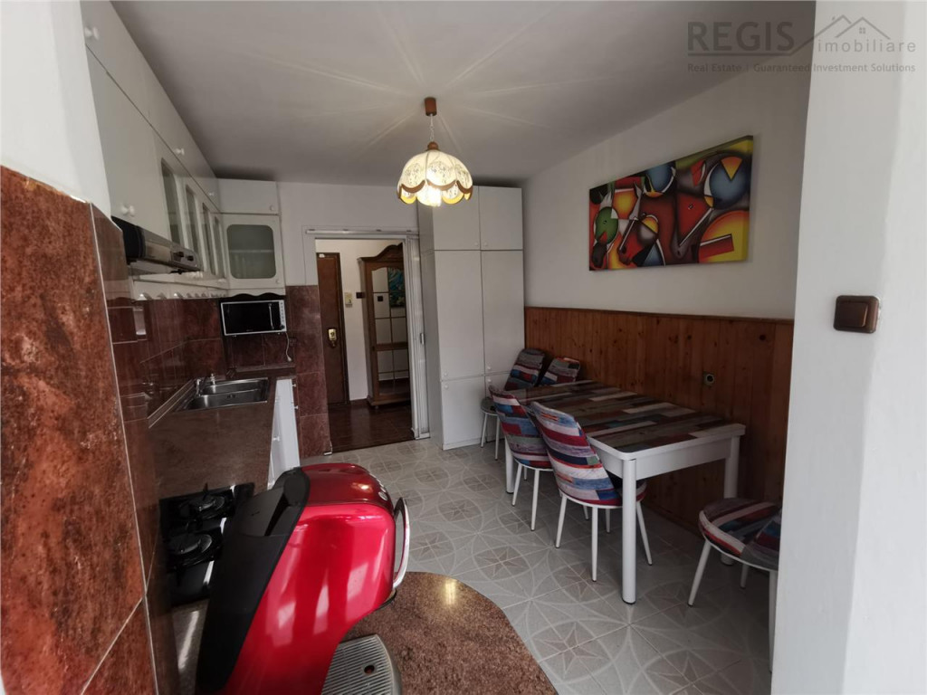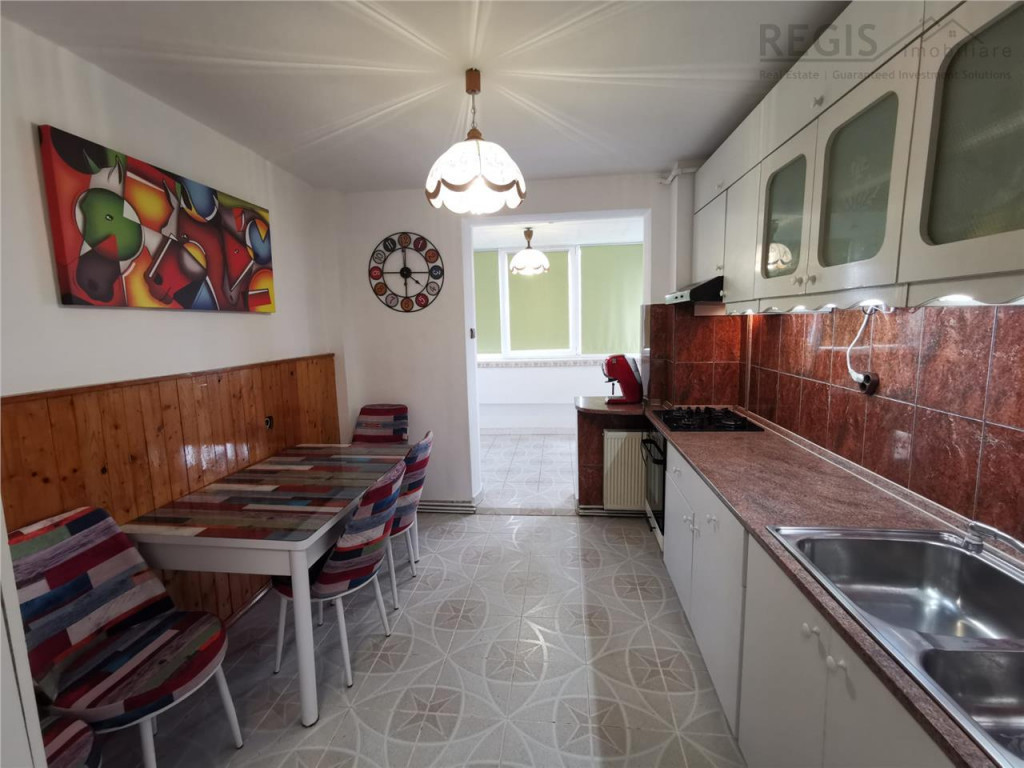 ID intern: 6721 REGIS Imobiliare va propune spre inchiriere apartament spatios cu 3 camere, decomandat, 90 mp, mobilat si utilat complet, cu loc de parcare inlus. Ideal pentru o familie sau studenti. Este foarte bine structurat, fiind compus din bucatarie separata, balcon, 2 dormitoare, baie si living. Dotari si facilitati Mobilat complet Masina de spalat Frigider Plita si cuptor TV Aer conditionat Boxa la subsol Internet Apartamentul este situat intr-o zona accesibila, aproape de puncte de interes. Pret chirie 550 euro/luna Garantie 550 euro Comisin agentie 50% TVA din prima luna de chirie Pentru mai multe detalii sau vizionare, nu ezitati sa contactati 0774994172 Ilona