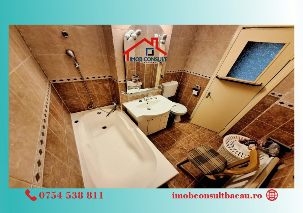 Imob Consult Bacau va prezinta spre achizitionare un apartament spațios cu 3 camere, decomandat, situat la etajul 2 al unui imobil cu 3 niveluri, amplasat pe strada Neagoe Vodă. Construit în anul 1981 și izolat pe exterior, blocul oferă un confort termic sporit și costuri de întreținere reduse, fiind o alegere potrivită atât pentru locuire, cât și pentru investiție pe termen lung. Apartamentul se remarcă printr-o suprafață utilă generoasă, compartimentată eficient, astfel încât fiecare încăpere beneficiază de lumină naturală și spațiu optim. Livingul și cele două dormitoare sunt bine proporționate, iar rulourile montate la dormitoare oferă un plus de intimitate și confort. De asemenea, locuința dispune de două băi, un avantaj important pentru orice familie. Balconul este închis, adăugând spațiu suplimentar ce poate fi utilizat în funcție de nevoi, iar la subsol proprietatea beneficiază de o boxă ideală pentru depozitare. Confortul interior este completat de centrala termică proprie și instalația de aer condiționat, asigurând o temperatură plăcută în orice anotimp. Situat într-o zonă liniștită, dar bine conectată cu punctele de interes din oraș, apartamentul reprezintă o oportunitate excelentă pentru cei care caută o locuință într-un bloc cu regim redus de înălțime, cu spații ample și condiții moderne de confort. Daca consideri ca aceasta proprietate ti se potriveste, nu ezita sa ne contactezi la nr. de tel: - Cosmin: 0754.583.811; - Corina: 0740.288.297, sau la sediul agenției noastre, Imob Consult Bacau, situat pe strada Banca Națională nr. 27 la intersecția cu Str. Neagoe Vodă, langa Irish Pub.