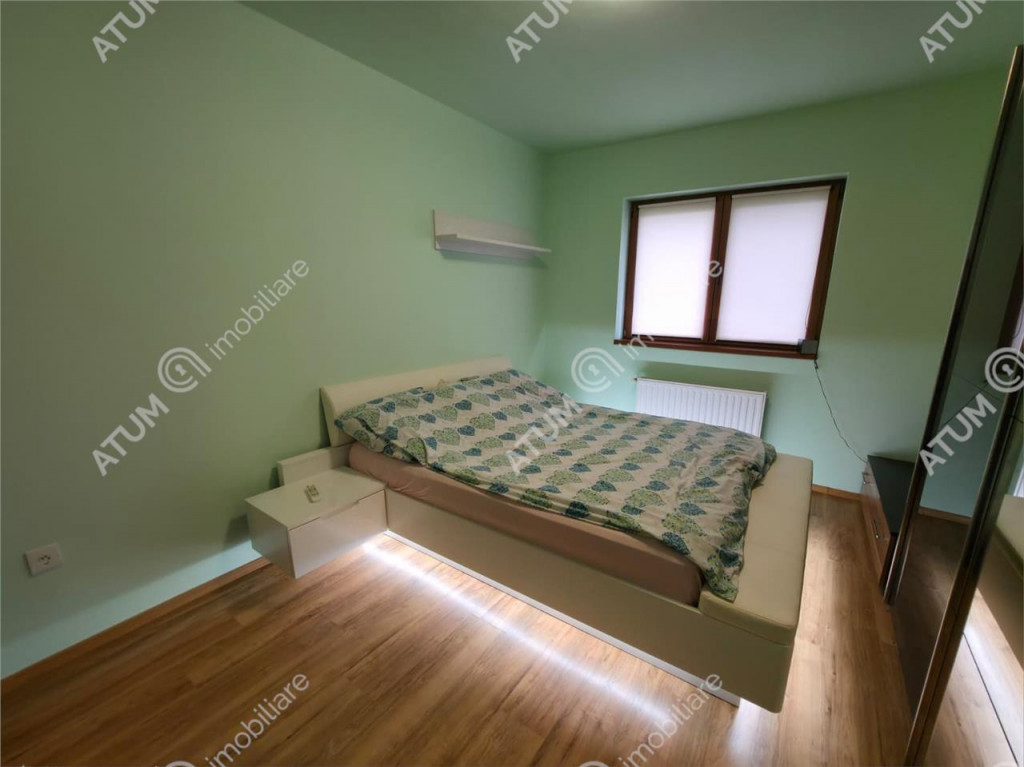De vanzare apartament modern finalizat in anul 2010 compus din 3 camere cu 2 bai si terasa, in suprafata totala de 116 mp, orientat SUD-EST, localizat din zona Arhitectilor din Sibiu. Suprafata utila este de 90 mp dispusi in 2 dormitoare spatioase a cate 13 mp, living open space cu bucatarie in suprafata de 40 mp modulari sau cu posibilitatea de modificare in 10 mp bucatarie si 30 mp living, bai de 5 si 4 mp, un hol de intrare cu spatiu de pantofar si cuier de 11 mp. Separat de suprafata utila, apartamentul dispune de o terasa spatioasa de 8.5 mp in care accesul se face din camera de zi si dormitor. Proprietatea detine si un loc de parcare privat special amenajat cu intrare cu bariera, separat de zona dedicata vizitatorilor. Apartamentul este dotat cu centrala termica noua in condensatie, incalzire cu calorifere, instalatii de apa noi, instalatii electrice noi din cupru cu iluminare prin spoturi, prize si intrerupatoare, instalatie de aer conditionat si aparataj montat in living. Finisajele sunt moderne si realizate la o calitate superioara, precum pardoseala placata cu gresie de dimensiuni mari, baile, iar in bucatarie si dormitoare pardoselile sunt acoperite cu parchet laminat cu grosimea de 10 mm, peretii sunt placati cu faianta in bai, iar in dormitoare si living sunt zugraviti cu vopsea lavabila. Usa de acces este metalica placata cu panou din MDF iar cele din interior sunt din lemn. Livingul este luminos dotarita unei zone vitrate generoase inchise cu geam termopan cu tamplarie din PVC. Locuinta se preda complet mobilata cu mobilier de bucatarie modern realizat pe comanda cu electrocasnice incastrate precum: plita electrica, hota, cuptor electric, cuptor cu microunde, frigider si masina de spalat vase. Livingul dispune de canapea, comoda, dormitoarele cu mobilierul specific si televizor, baile cu obiecte sanitare, masina de spalat rufe. Apartamentul este situat la etajul 2 inalt intr-un imobil cu 4 etaje si parter, interfon pentru accesul securizat in casa scarii. Acesta este pozitionat in una dintre cele mai ravnite zone din Arhitectilor, avand acces facil la spatii comerciale, magazinele la doar 2 minute de mers pe jos, institutii de invatamant si alte puncte de interes major. Valoarea de achizitie a locuintei este de 140.000 euro negociabil. ID intern: 2964.