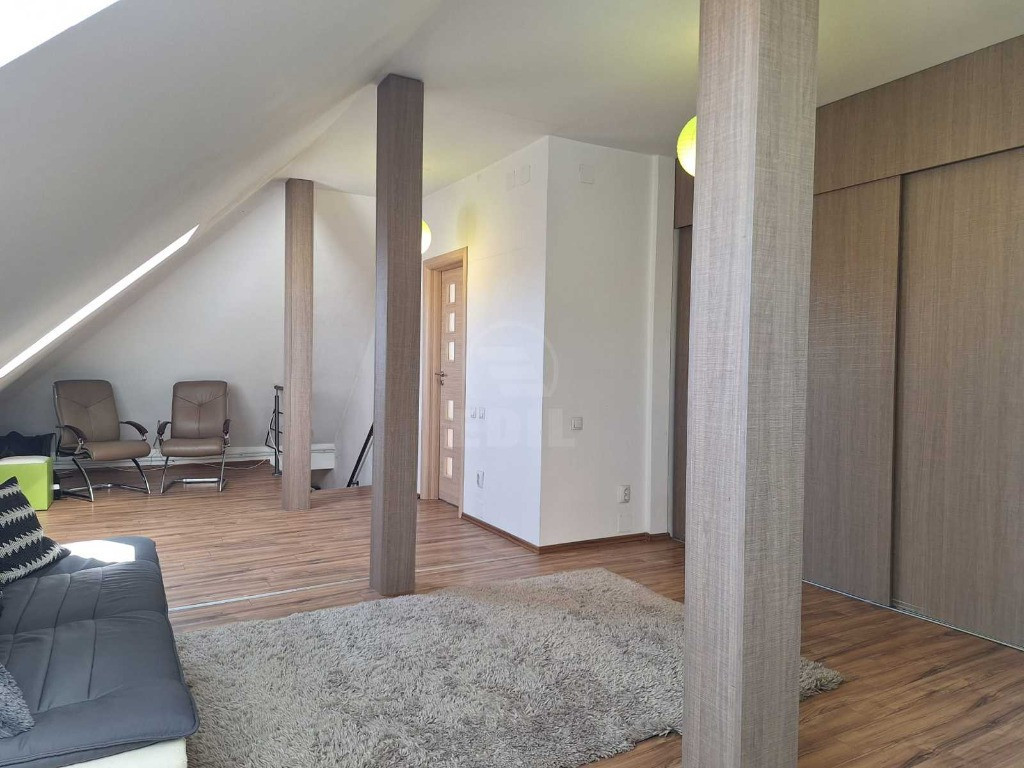 Pretul nu include TVA! ID intern APCJ246360 EDIL Florești vă propune spre vânzare un apartament cu 3 camere, situat într-un imobil cu regim de înălțime P+3E+M, zona Porii, zona centrală.Locuința este amplasată la mansardă și dispune de o suprafață utilă totală de 98 mp, distribuită pe două niveluri: partea inferioară are 68 mp si este compartimentata astfel:-hol intrare, bucatarie, living, dormitor, spatiu de depozitare, baie, iar etajul superior (accesibil prin scară interioară) are 30 mp si este compartimenta astfel: zona de relaxare, dressing si baie.Apartamentul este semidecomandat, confort 1, și se vinde complet mobilat și utilat modern. Este echipat cu centrală termică proprie, o baie, un balcon și finisaje moderne: gresie, faianță și parchet laminat.Această proprietate reprezintă o oportunitate excelentă pentru locuire sau investiție, având un raport calitate/preț foarte bun. Exista posibilitatea achizitonarii unei parcari la 5.000euro. Pentru informații suplimentare sau pentru programarea unei vizionări, vă așteptăm la sediul agenției EDIL Florești, Str. Eroilor, Nr. 25, Ap. 15 (et. 1), sau telefonic.