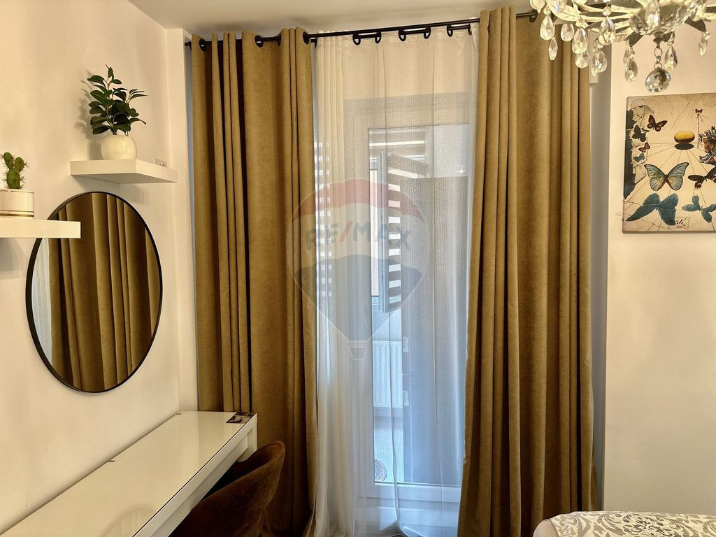 Intrând în apartament, vei fi întâmpinat de un living luminos și primitor, amenajat cu atenție pentru a-ți oferi un spațiu de relaxare și socializare perfect. Ferestrele mari permit luminii naturale să pătrundă generos, conferind încăperii o atmosferă plăcută și primitoare. Mobilierul elegant și accesoriile bine alese completează perfect atmosfera.