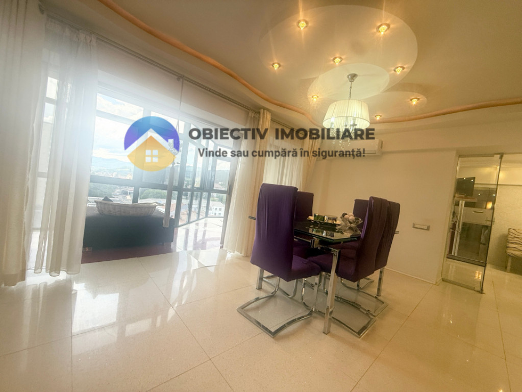 ????️ Apartament Premium cu 3 Camere, Terase Panoramice și Dotări de Lux – Bulevardul Dacia, Piatra Neamț ???? Adresa: Bulevardul Dacia, Piatra Neamț ???? Etaj 7 din 9 | Suprafață totală: 240 mp | Preț: 323.000 € (1350 €/mp) ???? Descriere Generală Descoperă un apartament cu adevărat special, poziționat în inima orașului Piatra Neamț, cu vedere panoramică spectaculoasă asupra munților, zonei Cuiejdi și centrului orașului. Situat la etajul 7 dintr-un bloc modern cu 9 nivele, această proprietate oferă un echilibru perfect între lux, confort, funcționalitate și siguranță. Cu dublă orientare (Bulevardul Dacia la EST și Piata Stefan cel Mare la VEST), apartamentul beneficiază de lumină naturală din abundență și o compartimentare excelentă pentru un stil de viață sofisticat și relaxant. ????️ Compartimentare Ideală • Living & Dining Open Space – 64 mp: un spațiu generos și aerisit, ideal pentru familie și socializare • Dormitor Matrimonial – 26.8 mp + baie proprie (15 mp) + dressing (7 mp) • Dormitor Secundar – 15 mp + baie dedicată (4 mp) • Bucătărie – 26 mp, complet mobilată și utilată modern • Hol Elegant – 34 mp, ce adaugă un plus de rafinament • Terase Înconjurătoare – ~46 mp, cu vedere neobstrucționată asupra orașului și munților • 2 Boxe spațioase la subsol – 12 mp în total, unite, dotate cu rafturi din lemn masiv, cu funcție de adăpost antiaerian • 2 Locuri de Parcare – incluse în preț ✨ Dotări și Finisaje Premium • Centrală termică proprie cu capacitate pentru spatii mari/foarte mari • Încălzire prin pardoseală • Sistem de climatizare profesional (chiller exterior + ventiloconvectoare) • Aer condiționat separat • Pardoseli din parchet de bambus și compozit de calitate superioară • Mobilier complet, realizat la comandă • Electrocasnice moderne incluse • Finisaje de lux și detalii rafinate • 2 lifturi moderne cu acces securizat – intrare doar cu cartelă sau cod ???? Avantaje Esențiale ✔ Localizare ultracentrală, dar într-o zonă liniștită ✔ Suprafață impresionantă: peste 240 mp utili ✔ Priveliste panoramică asupra orașului și munților din toate camerele ✔ Terase generoase pentru relaxare în aer liber ✔ Dotări tehnice de top pentru un confort absolut ✔ Siguranță sporită prin acces securizat și boxe dedicate ✔ Ideal ca locuință personală exclusivistă sau investiție de lux ???? Contact Pentru mai multe informații sau pentru a programa o vizionare, vă așteptăm la sediul agenției din Piața Mihail Kogălniceanu nr. 2 sau la telefon: 0757 030 616 Id intern: P183934