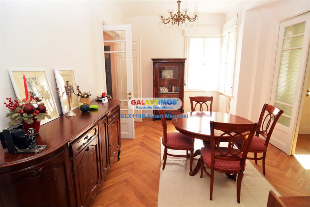 Oferta Exclusiva. Avem cheile proprietatii. Va propun spre inchiriere un apartament cu 4 camere, cu un farmec interbelic, situat in inima cartierului ambasadelor si a consulatelor. Apartamentul a fost renovat recent integral pastrand rafinamentul arhitecturii de epoca si cu o deosebita atentie la detalii dar si la alegerea mobilierului in stilul epocii care iti creeaza o puternica senzatie de teleportare in trecut. Apartamentul pe langa cele 4 camere are si doua bai, un dresing si o bucatarie complet echipata cu vesela, un balcon inchis si o terasa de 8 m2 cu vedere spre gradina interioara. Apartamentul este mobilat complet, beneficiaza de centrala termica si este utilat cu: frigider, aragaz, cuptor, microunde, mixer, cafetiera, masina de spalat vase, masina de spalat rufe cu uscator, fier de calcat, aspirator, televizor, trei aparate de aer conditionat. Apartamentul se inchiriaza pentru 1690 euro/luna, negociabil. 1 1 Informatii eficienta energetica: Clasa energetica: Consumul de energie primara: Indicele de emisii echivalent CO2: Consum de energie din surse regenerabile:
