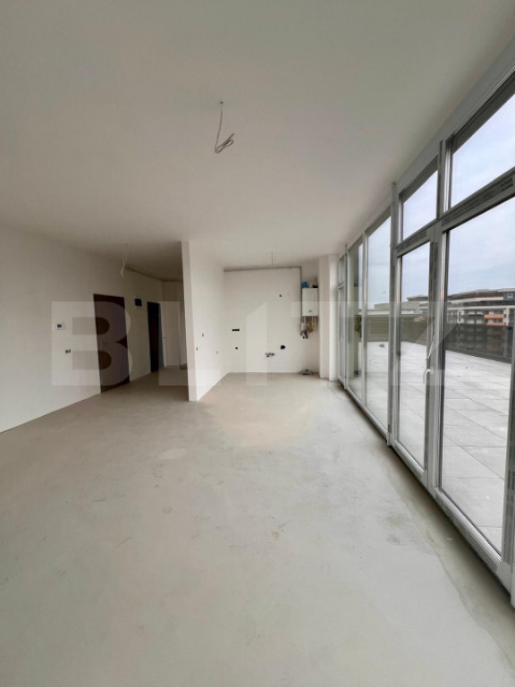 Blitz propune spre vanzare un apartament cu 3 camere, tip penthouse, situat la ultimul etaj al unui complex rezidential nou, in zona strazii Soporului. Apartamentul are o suprafata utila de 110.54 mp si o terasa impresionanta de 137.84 mp, care ofera vedere panoramica si un spatiu ideal pentru relaxare. Compartimentare: • living cu bucatarie open space • 2 dormitoare (unul cu dressing si baie proprie) • hol • baie separata Se preda cu peretii finisati in alb si sapa trasa, astfel ca viitorul proprietar isi poate personaliza locuinta exact dupa preferinte. Exista si posibilitatea de a oferi un proiect de design, la cerere. Zona este foarte bine dezvoltata: statie de autobuz la cateva minute, magazine, farmacii, iar in apropiere urmeaza sa fie amenajate terenuri de tenis si parcul de agrement Gheorgheni. Proprietatea beneficiaza de 2 locuri de parcare subterane, dintre care unul are o suprafata de 49 mp, oferind flexibilitate pentru depozitare sau alte utilizari. Un apartament spatios, luminos si potrivit pentru cine isi doreste un stil de viata modern si confortabil. Cod ofertă / ID BLITZ: P159917 Id intern: P159917