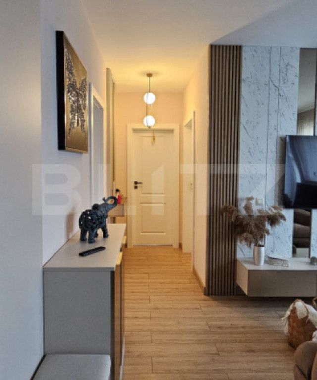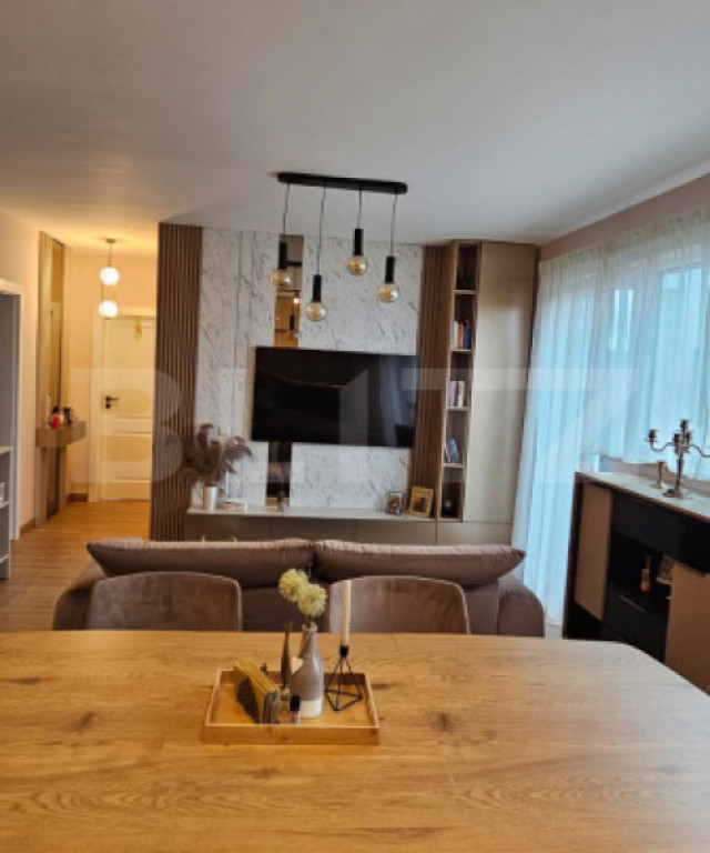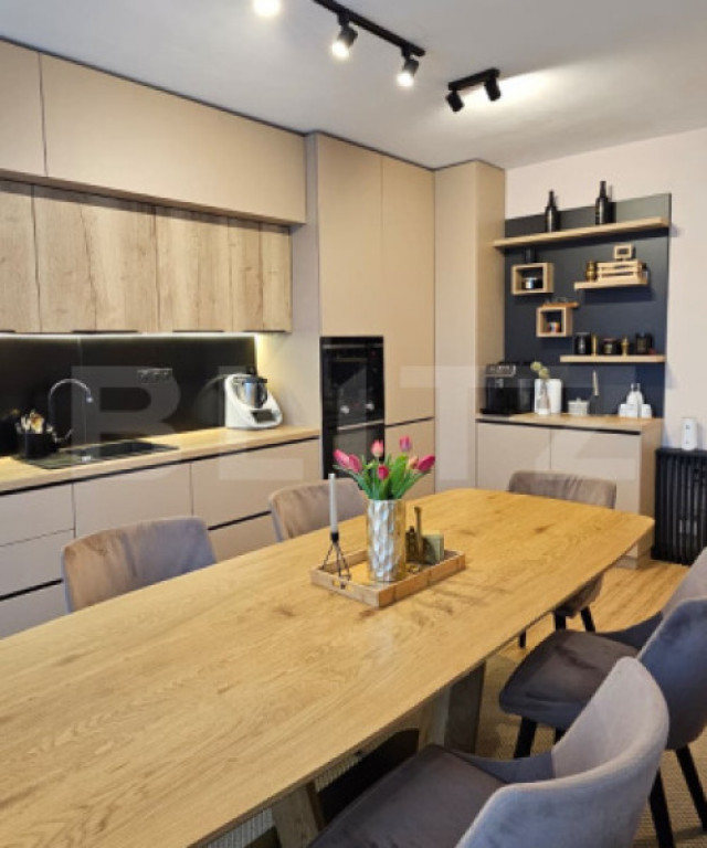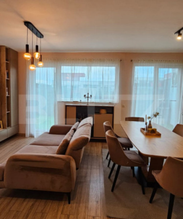 Vă propun spre vânzare un apartament tip penthouse, modern și exclusivist, situat în Baciu – zona Petrom, într-un imobil nou, cu lift și izolație termică. Proprietatea dispune de 57 mp utili și o terasă spectaculoasă de 59 mp, amenajată complet, oferind o priveliște panoramică și un spațiu de relaxare unic. ???? Compartimentare și dotări: Living generos cu bucătărie open-space, luminos și primitor - Dormitor matrimonial spațios - Cameră suplimentară (birou / cameră copil / oaspeți) - Baie elegantă, finisată modern - Etaj 4/4, acces cu lift - Orientare sud-estică – lumină naturală pe tot parcursul zilei Terasă circulară de 59 mp, complet amenajată cu: - Gazon artificial - Foișor - Mobilier exterior - Priveliste panoramică asupra zonei ✨ Finisaje și dotări premium: - Apartament amenajat complet „la cheie” - Finisaje moderne, realizate cu atenție la detalii - Mobilă făcută la comandă - Amenajare realizată cu designer de interior - Încălzire în pardoseală - Tâmplărie termopan de calitate superioară - Videointerfon - Bloc izolat termic ???? Parcări incluse în preț: - 1 parcare subterană (CF separat) - 1 parcare exterioară (CF separat) - Posibilitate de achizitie separata, fara parcari, la pretul de 181.000e O proprietate exclusivistă, pregătită pentru mutare imediată, care îmbină confortul, designul modern și intimitatea într-un mod impecabil. O oportunitate unică pentru cei care își doresc un stil de viață superior. Va asteptam la vizionare! Cod ofertă / ID BLITZ: P158171 Id intern: P158171