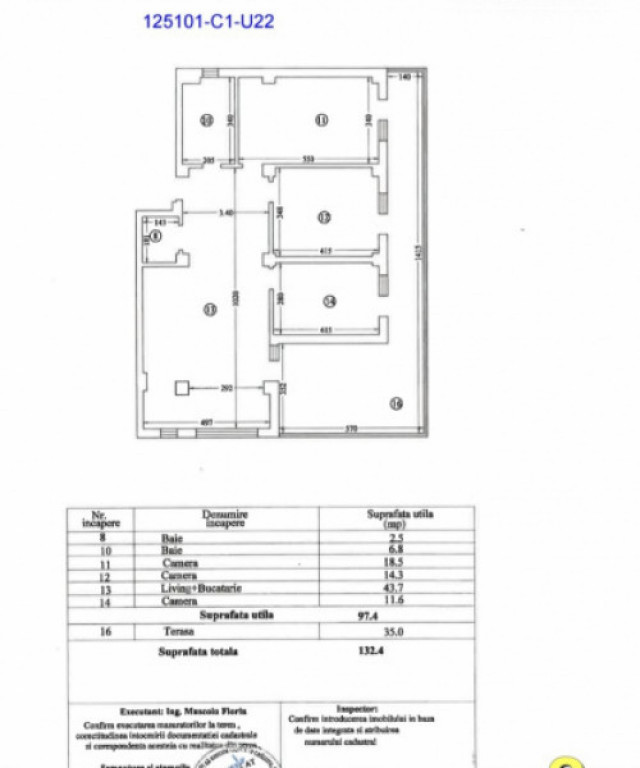 • Tipul apartamentului: 4 camere, tip:open-space.