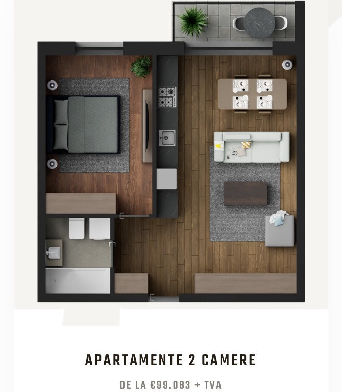 Apartament tip studio 2 camere, 55,2 mp, Decembrie 2026