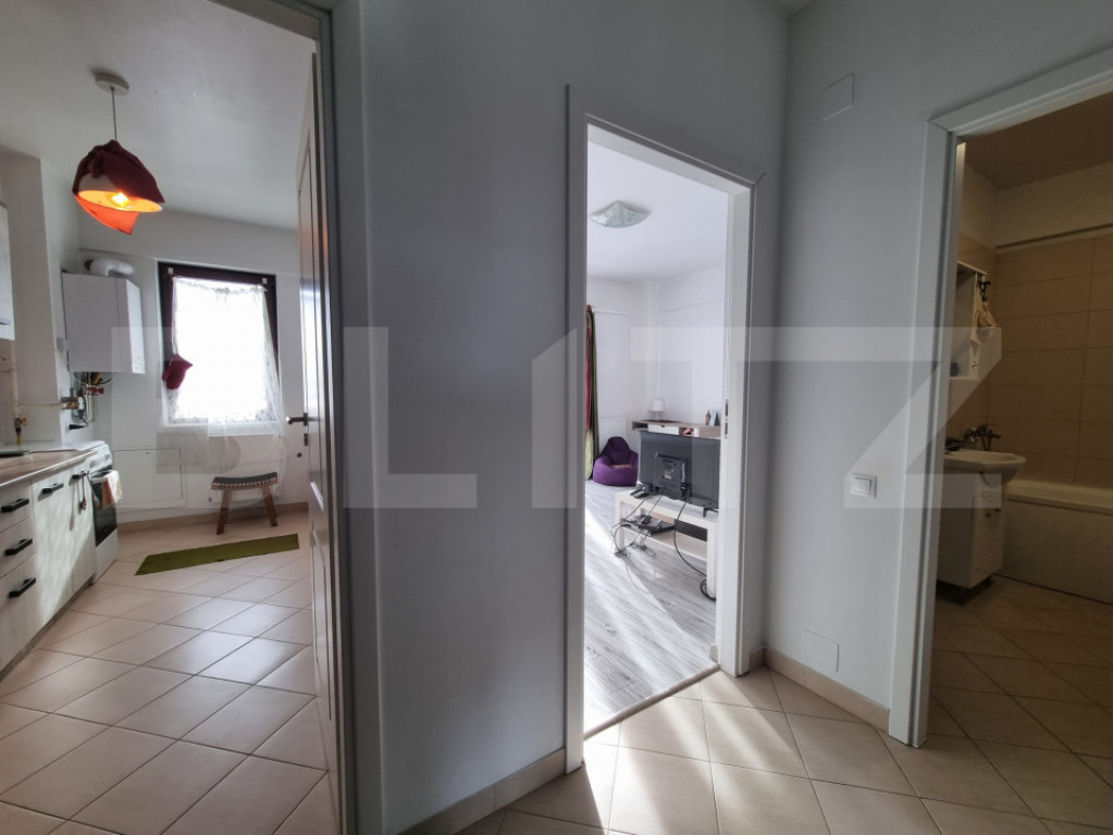 Studio modern de vânzare într-un bloc nou, finalizat în 2019, ideal pentru locuit sau investiție, datorită compartimentării eficiente și orientării sudice care asigură lumină naturală pe tot parcursul zilei. Apartamentul are o suprafață utilă de 37 mp, la care se adaugă o terasă generoasă de 10 mp, perfectă pentru relaxare, cafeaua de dimineață sau un mic spațiu verde urban. Este situat la etajul 4 din 5, într-un imobil dotat cu lift, oferind un echilibru foarte bun între intimitate, lumină și acces facil. Orientarea sudică contribuie la un confort termic sporit și la costuri reduse de întreținere. Locuința dispune de centrală termică proprie și încălzire prin calorifere, oferind control total asupra temperaturii și cheltuielilor. Compartimentarea este practică și bine gândită, cu hol prevăzut cu spațiu de depozitare, bucătărie separată, cameră luminoasă cu acces direct pe terasă și baie. Configurația permite o mobilare ușoară și o utilizare eficientă a fiecărui metru pătrat, fiind potrivită atât pentru rezidență proprie, cât și pentru închiriere pe termen lung sau în regim hotelier. În completarea proprietății, se poate achiziționa un loc de parcare subteran, la prețul de 12.000 euro, un avantaj important într-o zonă cu cerere ridicată pentru parcări. Această proprietate reprezintă o alegere excelentă pentru cei care caută un apartament modern, luminos și ușor de întreținut, într-un imobil nou, cu acces rapid la facilități urbane. Cod ofertă / ID BLITZ: P162608 Id intern: P162608