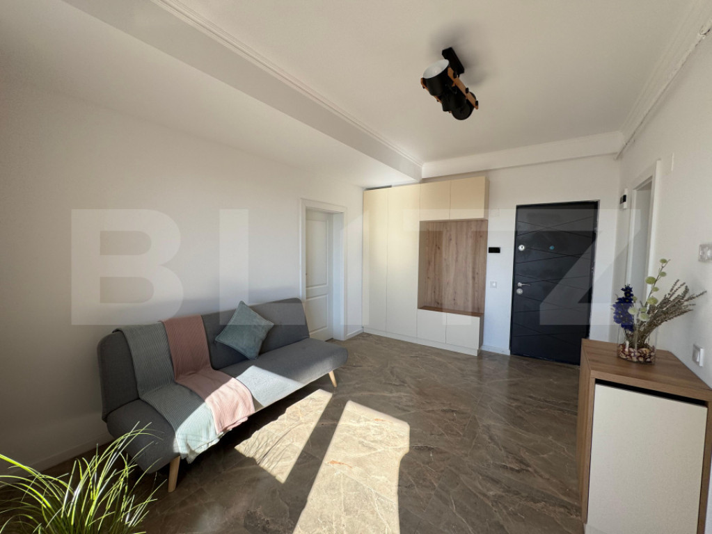 Blitz vă prezintă un apartament tip studio, la prima închiriere, situat la etajul 7 din 10 al unui bloc nou, finalizat în 2025. Totul este complet nou – de la mobilier până la electrocasnice – apartamentul fiind pregătit pentru primul său locatar. Caracteristici principale: Suprafață utilă optim compartimentată Încălzire în pardoseală – confort garantat în sezonul rece Complet mobilat și utilat: aragaz, mașină de spălat rufe, mobilier modern View superb de la balcon, ideal pentru relaxare Bloc nou, dotat cu 2 lifturi rapide și silențioase Boxă spațioasă la același etaj, situată chiar lângă apartament – perfectă pentru depozitare suplimentară Locație excelentă: Apartamentul este amplasat într-o zonă cu acces facil la școli, bănci, magazine și alte puncte de interes. Conexiuni rapide către centrul orașului și mijloace de transport în comun în apropiere. Nu se acceptă animale de companie. Ideal pentru cupluri sau persoane singure care își doresc un spațiu modern, curat și bine poziționat, într-un bloc nou, cu toate facilitățile. Cod ofertă / ID BLITZ: P151327 Id intern: P151327