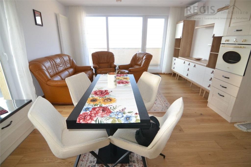 ID:6258 REGIS Imobiliare va propune spre inchiriere apartament cu 2 camere, tip studio. Detali: ~Suprafata utila:57mp ~Suprafata totala:77mp ~2 camere ~Etajul:4/8 ~Centrala propie ~Loc de parcare inclus in pret Compartimentare: ~open space ~Living spatios dotat cu bucatarie mobilata si utilata, dormitor luminos, hol baie si terasa mare. Complet utilat cu: ~Aragaz, hota, frigider, masina de spalat rufe,TV Detalii imobil: ~An constructie 2020 ~An renovare:2024 ~Izolat interior si exterior Zona: ~Moderna si bine cotata din Brasov, apreciata pentru accesul rapid la puncte de interes precum supermarketuri, farmacii, scoli, gradinite si zone de recreere. ~Ansamblul rezidential ofera un nivel ridicat de confort, cu spatii curate, locuri de parcare si acces facil la mijloacele de transport public. ~Zona este ideala pentru familii, tineri profesionisti sau cupluri care isi doresc un stil de viata urban, modern si bine conectat. Comisionul agentiei este de 50% TVA dintr-o chirie la semnarea contractului. Garantie: echivalentul unei chirii lunare. Va asteptam cu drag la vizionare. Agent imobiliar - Narcisa
