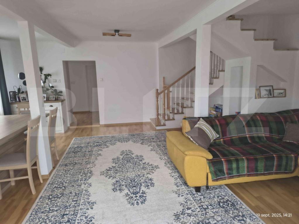 Blitz Imobiliare vă propune spre vânzare un apartament deosebit, cu personalitate și suprafețe generoase, situat într-o zonă apreciată din Baciu Regal, într-o curte comună cu doar două alte proprietăți, oferind intimitate și liniște. Locuința este construită din lemn peste o structură solidă din piatră și beneficiază de o suprafață utilă de 127,6 mp, completată de o terasă spectaculoasă de 27 mp, ideală pentru relaxare sau activități în aer liber. Apartamentul este finisat și mobilat, gata de mutare, și a trecut recent printr-un proces amplu de renovare și restaurare, incluzând: acoperiș nou termoizolație eficientă cu vată bazaltică geamuri noi sistem de încălzire modern cu centrală proprie pe gaz Un avantaj important îl reprezintă locul de parcare acoperit, în curte, oferind siguranță și confort zilnic. Zona este recunoscută pentru atmosfera rezidențială liniștită, fiind ideală pentru cei care își doresc un stil de viață echilibrat, aproape de oraș, dar departe de agitație. acces rapid la mijloacele de transport în comun, stație la câteva minute zonă aerisită, cu case și proprietăți selecte aer curat și liniște, ideal pentru familii sau lucru de acasă conexiune facilă către Cluj-Napoca și zonele comerciale comunitate restrânsă, cu sentiment de intimitate și siguranță Această proprietate este ideală pentru o familie, pentru cei care apreciază spațiul, natura și confortul, dar și pentru o investiție pe termen lung. ???? Blitz Imobiliare vă așteaptă la vizionare! Cod ofertă / ID BLITZ: P162491 Id intern: P162491