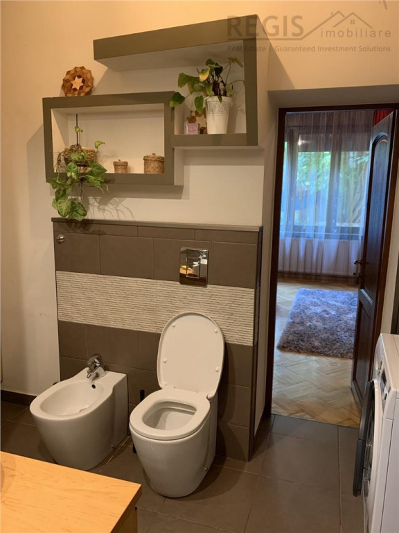 ID 5916 Regis Imobiliare va propune spre inchiriere ndash; Apartament ultracentral, Brasov Vizavi de Parcul Central, chiar in inima Brasovului Detalii proprietate: Suprafata: 124 mp Compartimentare: 2 dormitoare, 1 living cu zona de dining, balcon, 2 bai si jumatate Dotari moderne: cuptor, plita, hota, masina de spalat vase mare, cuptor cu microunde, frigider cu congelator, masina de spalat rufe, TV mare in living Parcare in curte ndash; acces pe culoarul din spatele casei loc in fata garajului Ideal pentru familie sau pentru cei care doresc confort premium in centrul orasului. Comision: 50% din prima chirie TVA Irene Jordache