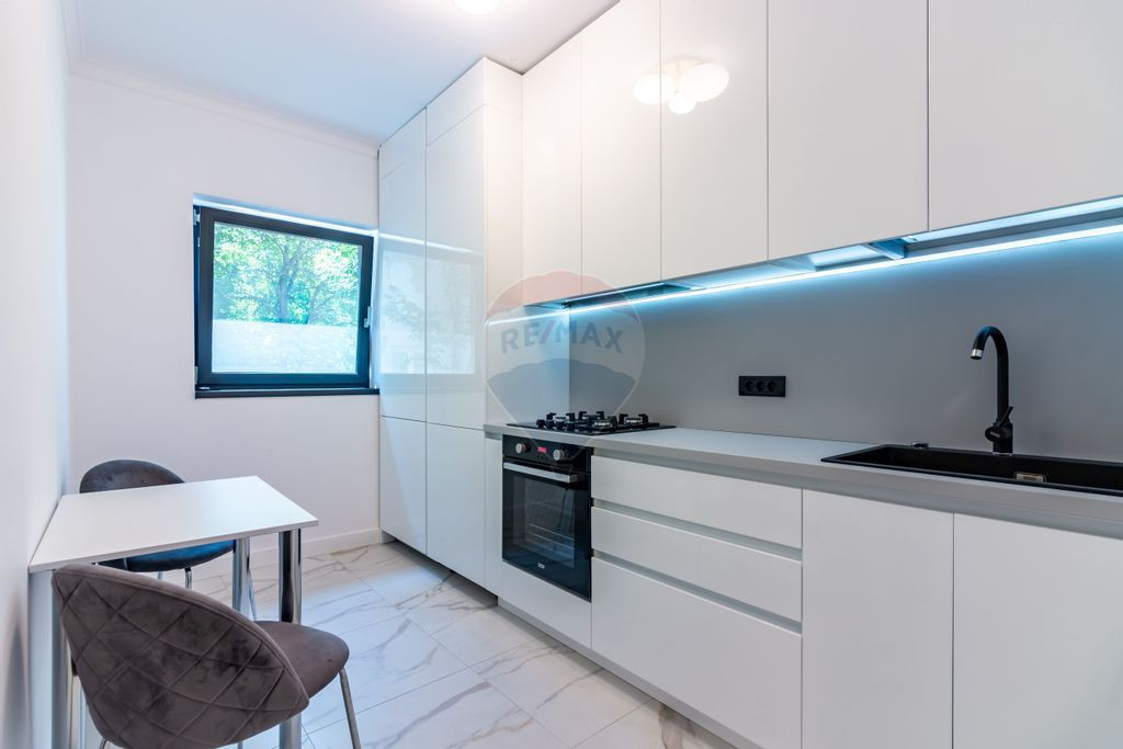 Locuinta beneficiaza de o renovare completa finalizata in 2025, cu materiale si finisaje premium, instalatii electrice si sanitare schimbate integral, tamplarie noua, incalzire in pardoseala si centrala proprie.