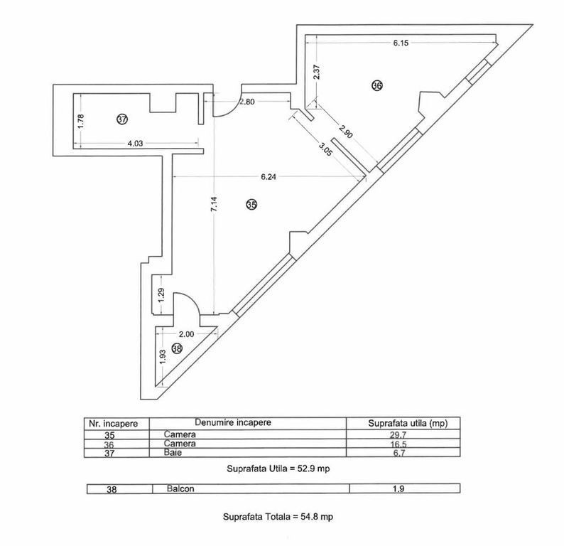 Suprafața utilă 53 m²