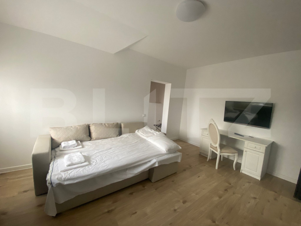 Locuințele dispun de dormitoare cu dulapuri, bucătărie open-space complet utilată, zonă de living dotată cu canapea și TV, baie și hol generos, cu multiple spații de depozitare.