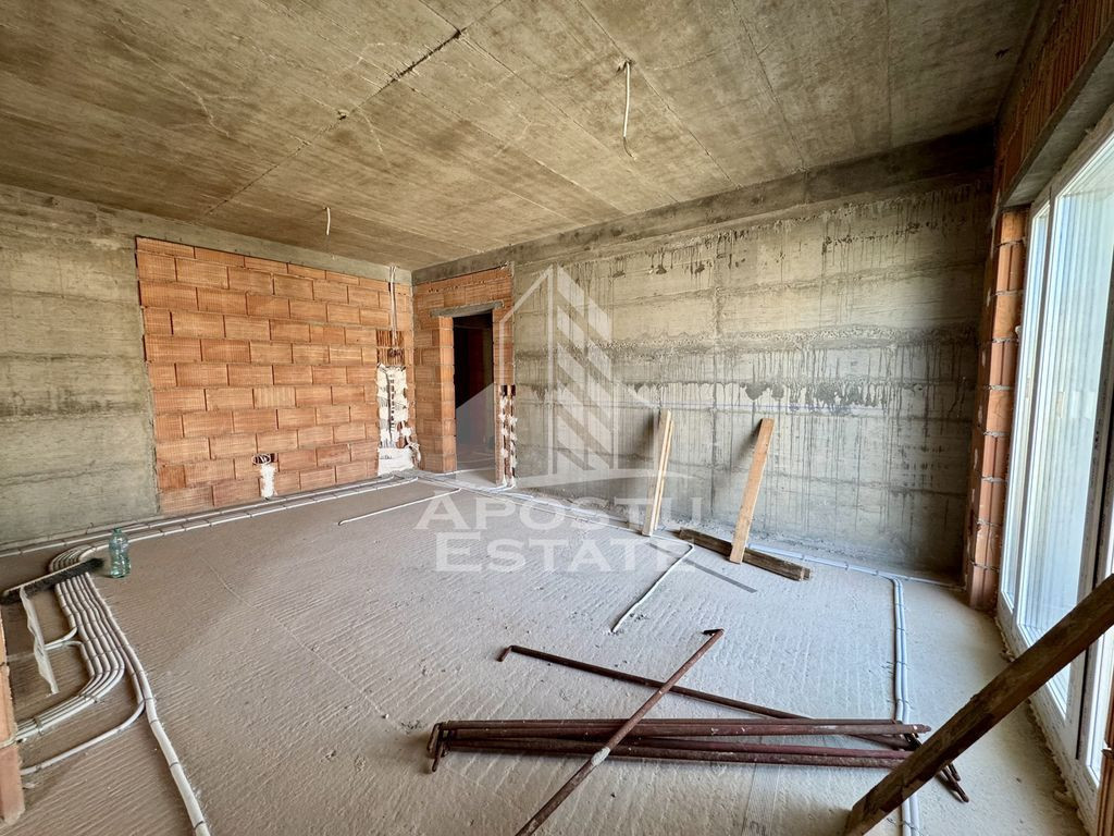 APOSTU ESTATE va propune spre vanzare apartamente cu 2 camere situate la intrare in Giroc. Drumul de acces spre imobil este pietruit. In apropiere sunt magazine si supermarket-uri precum: Mega Image, Profi, Lidl, scoala si gradinita la o distanta de 7 minute, acces facil la mijlloace de transport in comun. Imobilul se vinde la cheie, complet finisat si pregatit pentru noii proprietari, atat in interior cat si in exterior. Termenul de predare este luna Noiembrie 2025. Modelul de apartament este disponibil la etajul 1, 2 si 3. Suprafata este de 57 mp utili + terasa de 15 mp. Compartimentare: - hol acces - living si bucatarie open space cu posibilitate de inchidere - dormitor - baie cu geam - grup sanitar sau dressing la alegere - terasa Toate finisajele sunt realizate mecanizat cu produse de calitate superioara atent creionate. Detalii tehnice: - regim de inaltime: Parter + 3 Etaje + Etaj retras. - constructie realizata in anul 2024 din caramida Porotherm de 30 cm. - exterior izolat cu polistiren de 10 cm eps 80. - pereti despartitori complet din caramida (fara rigips) tencuiti mecanizat finisati cu glet si vopsea lavabila alba. - geamuri termopan cu 3 sticle pentru izolare fonica si termica superioara, foarte mari si luminoase. - centrala proprie pe gaz, sistem eficient de incalzire in pardoseala cu circuit separat pentru fiecare incapere. - aparataje modulare Gewis. - usa acces securizata, usi interioare Porta Doors. - gresie si faianta placi mari, modele actuale, parchet de 8 cm potrivit pentru incalzirea in pardoseala. - baile sunt dotate cu obiecte sanitare standard. - 1 loc de parcare inscris in cf. - blocul dispune de lift. Utilitati complete: curent, apa de la retea, canalizare, gaz, internet prin fibra optica, cablu Tv. Pentru mai multe detalii nu ezitati sa ne contactati! Acceptam orice fel de credit bancar. Oferim consultanta si solutii financiare prin colaboratorii nostri pentru a obtine cel mai avantajos credit Ipotecar sau Noua Casa. Va asteptam cu drag la o vizionare chiar astazi! CP2388486
