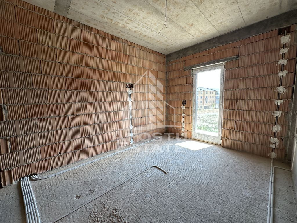 APOSTU ESTATE va propune spre vanzare apartamente cu 3 camere situate la intrare in Giroc. Drumul de acces spre imobil este pietruit. In apropiere sunt magazine si supermarket-uri precum: Mega Image, Profi, Lidl, scoala si gradinita la o distanta de 7 minute, acces facil la mijlloace de transport in comun. Imobilul se vinde la cheie, complet finisat si pregatit pentru noii proprietari, atat in interior cat si in exterior. Termenul de predare este luna Noiembrie 2025. Modelul de apartament este disponibil la etajul 1, 2 si 3. Suprafata este de 71 mp utili + terasa de 17 mp. Compartimentare: - hol acces - living si bucatarie open space cu posibilitate de inchidere - 2 dormitoare - 2 bai - terasa Toate finisajele sunt realizate mecanizat cu produse de calitate superioara atent creionate. Detalii tehnice: - regim de inaltime: Parter + 3 Etaje + Etaj retras. - constructie realizata in anul 2024 din caramida Porotherm de 30 cm. - exterior izolat cu polistiren de 10 cm eps 80. - pereti despartitori complet din caramida (fara rigips) tencuiti mecanizat finisati cu glet si vopsea lavabila alba. - geamuri termopan cu 3 sticle pentru izolare fonica si termica superioara, foarte mari si luminoase. - centrala proprie pe gaz, sistem eficient de incalzire in pardoseala cu circuit separat pentru fiecare incapere. - aparataje modulare Gewis. - usa acces securizata, usi interioare Porta Doors. - gresie si faianta placi mari, modele actuale, parchet de 8 cm potrivit pentru incalzirea in pardoseala. - baile sunt dotate cu obiecte sanitare standard. - 1 loc de parcare inscris in cf. - blocul dispune de lift. Utilitati complete: curent, apa de la retea, canalizare, gaz, internet prin fibra optica, cablu Tv. Pentru mai multe detalii nu ezitati sa ne contactati! Acceptam orice fel de credit bancar. Oferim consultanta si solutii financiare prin colaboratorii nostri pentru a obtine cel mai avantajos credit Ipotecar sau Noua Casa. Va asteptam cu drag la o vizionare chiar astazi! CP2388536