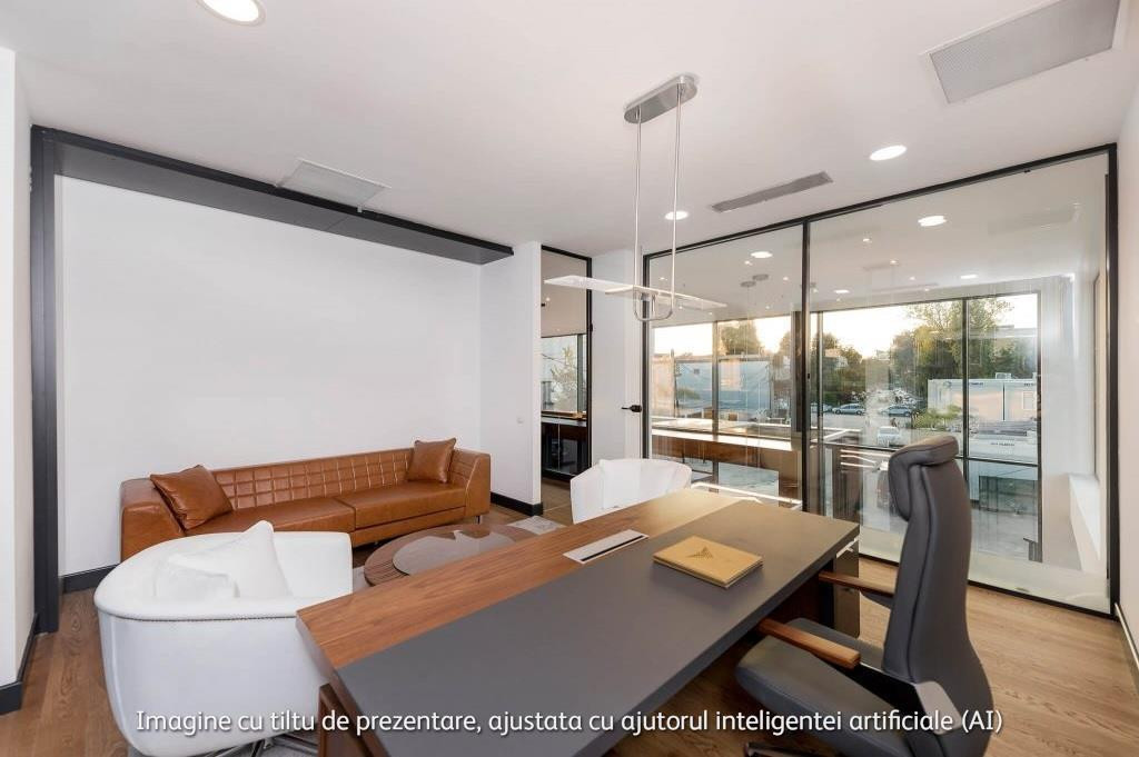 Inchiriaza spatiul tau de birouri in Floreasca! Locatie premium: Zona Floreasca Suprafata utila: 190 mp Suprafata construita: 214,35 mp Clasa birouri: A Nr. incaperi: 5 Nr. bai: 1 Locuri de parcare: 5 An constructie: 2019 Structura rezistenta: Beton Dotari si instalatii: Ventilatie: Aport de aer prin grila in fatada, cu tubulaturi aparente Climatizare: Sistem VRV pentru racire si incalzire, cu contorizare separata pe zone Instalatii: Prize, cabluri de date si telefonie configurabile; cablurile si tubulaturile sunt expuse pe tavan sau mascate prin sapa/panouri Posibilitate perdea de aer la ferestre Arhitectura si finisaje: Tavan: Beton aparent vopsit Pardoseala: Vopsea epoxidica Pereti: Vopsea lavabila Bai: Finisaje ceramice Avantaje: Vizibilitate excelenta, pozitie ultracentrala, zona cu trafic intens!
