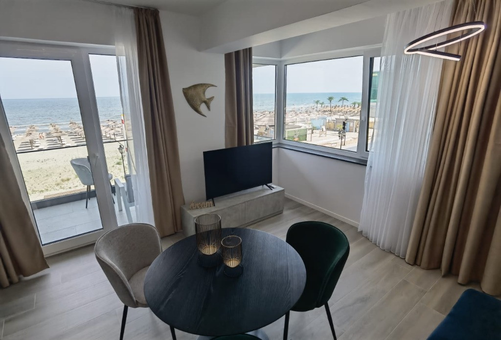 DIRECT DE LA DEZVOLTATOR FĂ-TE VECIN CU MAREA APARTAMENTE – STUDIOURI PRIMA LINIE LA MARE Mobilate si utilate complet la "cheie" inclusiv AC si masina de spalat vase Apartamente de la 96.000 eur cu vedere laterala tva inclus in pret Studiouri de la 69.000 eur vedere laterala tva inclus in pret valabil etaj 1 ,etaj 3,4,5 pret 72.000 eur Apartamentele cu vedere frontala de la 145.000 eur +tva Apartamente de la 115.000 eur etaj 4 si 5 Loc parcare teran 15.000 eur +tva Loc parcare subteran 20.000 eur +tva Locatia este in Mamaia Sar zona Colonia Butoaie, o zona rezidentiala in plina dezvoltare ce asigura acces facil catre urmatoarele zone de interes: -Restaurante -Beach baruri -Cluburi -Festivaluri Este un proiect imobiliar exclusivist cu regim de inaltime D+P+6 ce cuprinde 38 apartamente de 2 camere ,10 Studiouri, doua penthouse-uri si un spatiu comercial in suprafata de 400 mp Imobilul este executat cu profesionalism si materiale de buna calitate. Stadiul de predare al apartamentelor-studiourilor va fi la cheie si racordate la utilitati cu urmatoarele dotari : -centrala pe gaz cu incalzire in pardoseala -baie completa gresie-faianta instalatii sanitare montate ,cabina de dus si grupuri sanitare -usa metalica antiefractie porta doors -usi interior - parchet instalatii electrice (intrerupatoare si prize montate )aer conditionat -sistem izolatie -Termosistem cu polisteren plasa fibra sticla,tencuiala decorativa -tamplarie PVC Veka cu 5 camere -izolatie fonica glet și lavabila aplicata Acte la zi receptie si apartamentare totul functional 100 % ( gaz ,apa ,curent ,canalizare) Teren proprietate ,proiect sustinut din din resurse propii 100%
