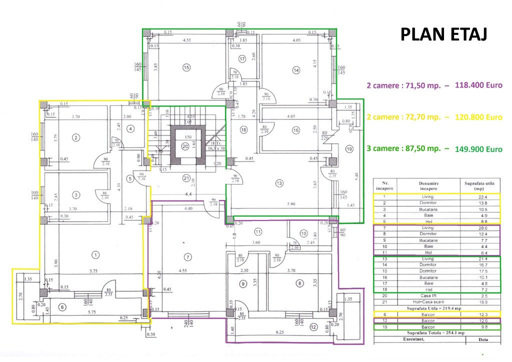 Carioca Residence este primul ansamblu rezidential privat din Slatina, care se contureaza in inima municipiului Slatina, intr-un nou cartier ultracentral si foarte linistit, pe str. Dr. Dumitru Toncu, si care pune la dispozitie apartamente spatioase, moderne, elegante si utile, la cele mai inalte standarde de calitate. Este un proiect ambitios, a carui parte importanta este aceea de a transforma fiecare locuinta intr-un camin primitor si sigur. Construite in cadre de beton armat ca la carte, din proiect fac parte: - Blocul VERDE, primul construit, finalizat si vandut integral intr-un timp foarte scurt; - Blocul GALBEN, ridicat si cu finisaje realizate in proportie de 90 %, si-a deschis usile si asteapta vecini noi pentru cei care s-au decis sa cumpere deja; - Blocul MOV, construit in oglinda blocului VERDE, a prins contur si se inalta cu aceeasi eleganta, deschizandu-si si acesta foarte curand usile pentru vizite. Apartamentele cu doua si trei camere care va asteapta, au inchiderile din caramida eficienta fara nicio urma de gipscarton, ci doar zidarii si tencuieli pontate cu laser, ferestruite de Salamander cu cel mai bun profil bicolor cu sapte camere si trei randuri de sticla. Polistirenul EPS-70 si vata bazaltica protejeaza de caldura si frig, asigurand confort tot timpul anului. Si pentru ca acest lucru sa fie dessavarsit, apartamentele de la parter au caldura direct prin pardoseli. Liftul SCHINDLER iti usureaza urcatul scarilor la oricare etaj. Incepand cu gresie, parchet, usi interioare, pana la centrala termica, obiecte sanitare si peretii vopsiti, in aceste apartamente trebuie sa mai aduci doar mobila care iti place si corpurile de iluminat. Suprafetele utile si preturile, care includ si TVA, pentru fiecare tip de apartament, sunt evidentiate mai jos: 2 camere : 71,50 mp. (58,90 mp. util + 9 mp. balcon + 3,60 mp. boxa) - 118.400 EURO 2 camere : 72,70 mp. (60,40 mp. util + 9 mp. balcon + 3,30 mp. boxa) - 120.800 EURO 3 camere : 87,50 mp. (77,50 mp. util + 8 mp. balcon + 2,00 mp. boxa) - 149.900 EURO