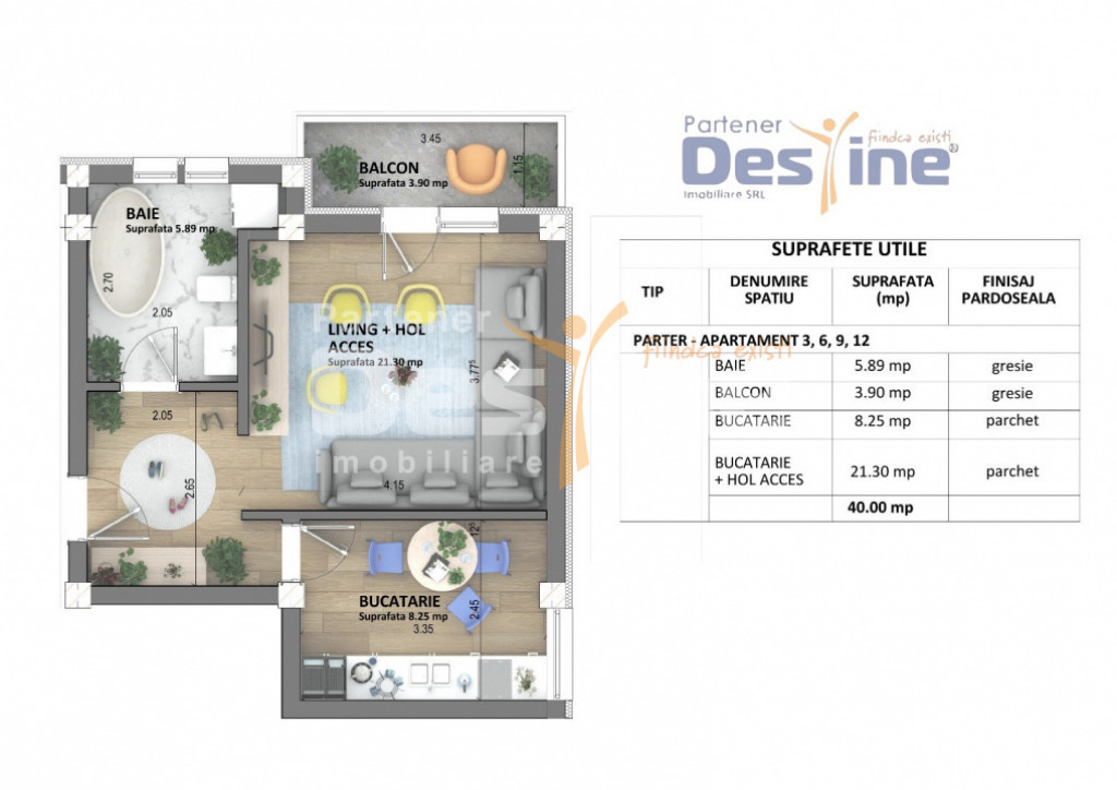 Suprafața utilă 36 m²