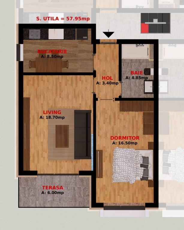 Suprafața utilă 58 m²