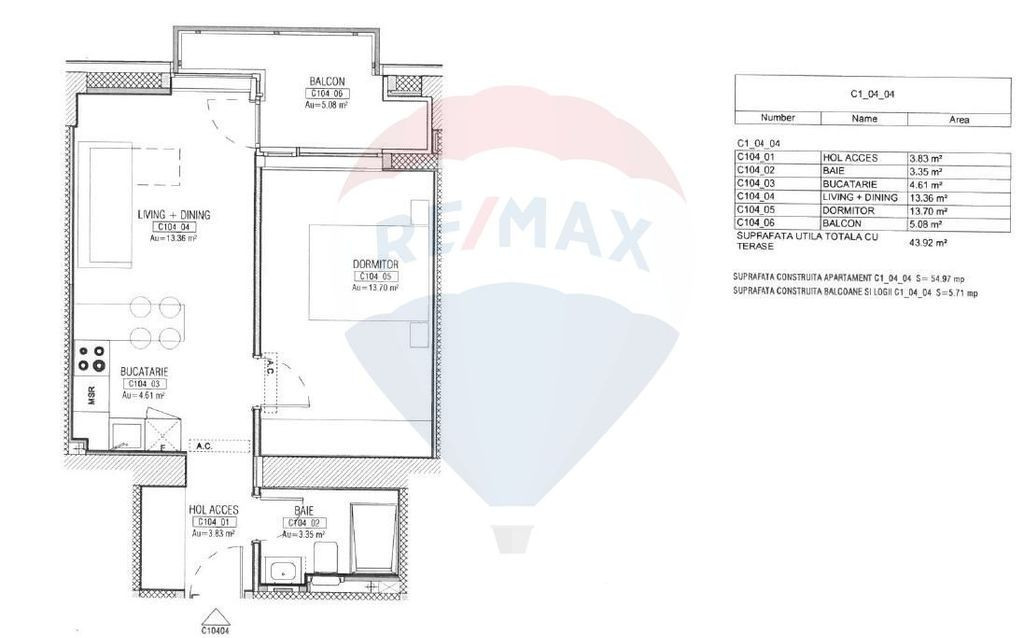 Suprafața utilă 44 m²