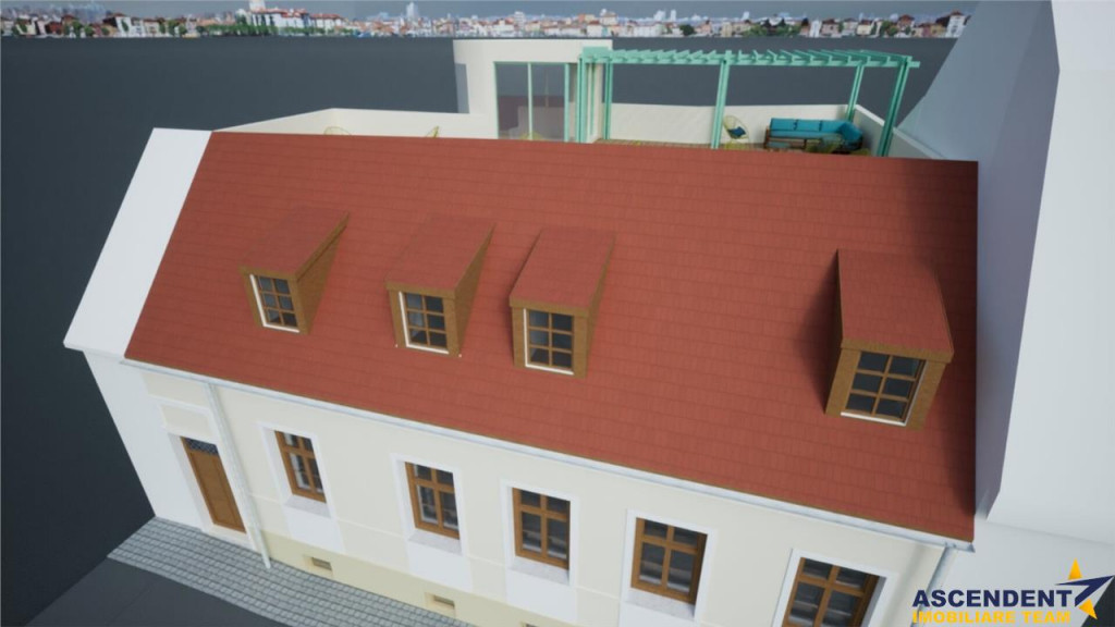 Completeaza oferta faptul ca cele sase studiouri cu baie proprie si spatiile adiacente dispun de o compartimentare avantajoasa, eficienta termica prin incalzire in pardoseala pe toata suprafata utila, cu pompa de caldura, instalatiile electrice si sanitare complet noi, totul fiind adus la cele mai inalte standarde de calitate.