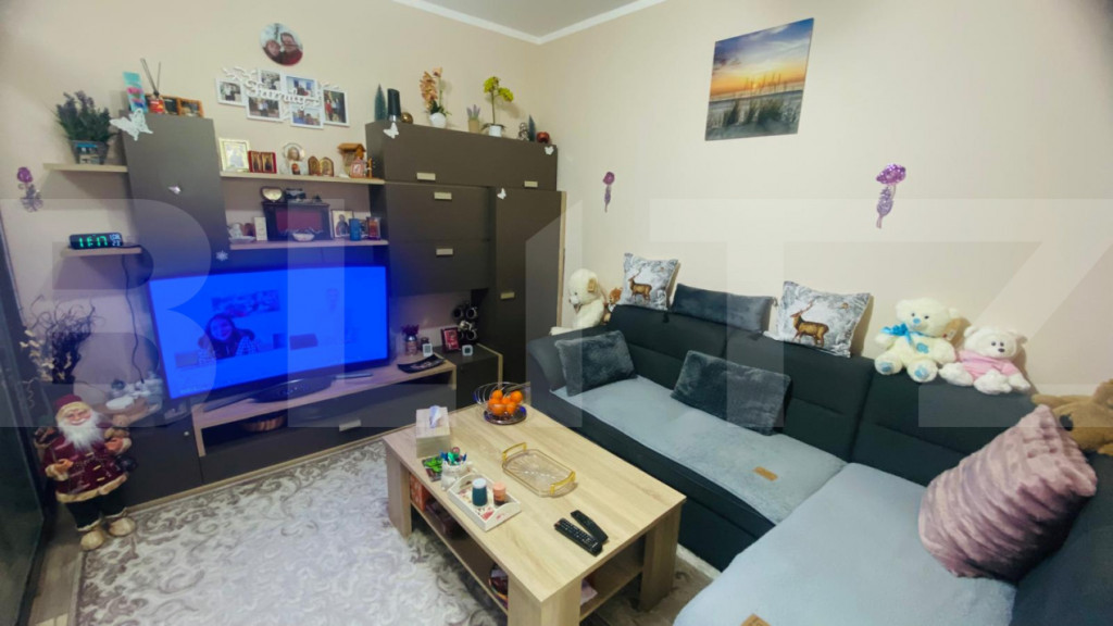 Blitz Imobiliare va prezinta un apartament cu 3 camere, expresia confortului si functionalitatii. Situat pe o starda linistita la doar 1 minut de mers pe jos de gradinita/scoala, la 3 minute de magazine si mijloace de transport in comun, locuinta este exceptionala pentru un cuplu cu copii sau o niste bunici implicati. Locuinta este amenajata cu bun gust si responsabilitate, firecare spatiu fiind gandit pentru beneficiu maxim. Particularitatea este data atat de luminozitatea bnaturala obtinuta prin orientarea pe 2 parti, E/V, cat si de depstarirea celor 2 dormitoare de catre livingul transpus, astfel incat intimitatea este garantata. Camera de zi este inteligent delimitata de hol prin niste usi glisante, care, odat deschise, maresc spatiul. Confortul termic este asigurat prin centrașa termica pe gaz, instalatie de climatizare, rulouri exterioare electrice. Cod ofertă / ID BLITZ: P161111 Id intern: P161111