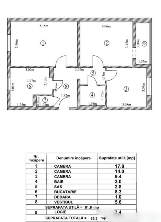 3 camere | 62 m²