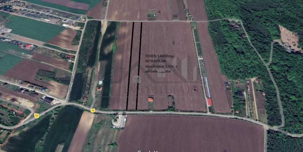 Ag. A.F.Imobiliare va propune spre vanzare un teren in suprafata de 14400mp intravilan cu deschiderea de 32m la doua strazi, una asfaltata si cu utilitati curent electric, apa, canalizare, ( gaz metan , in zona)