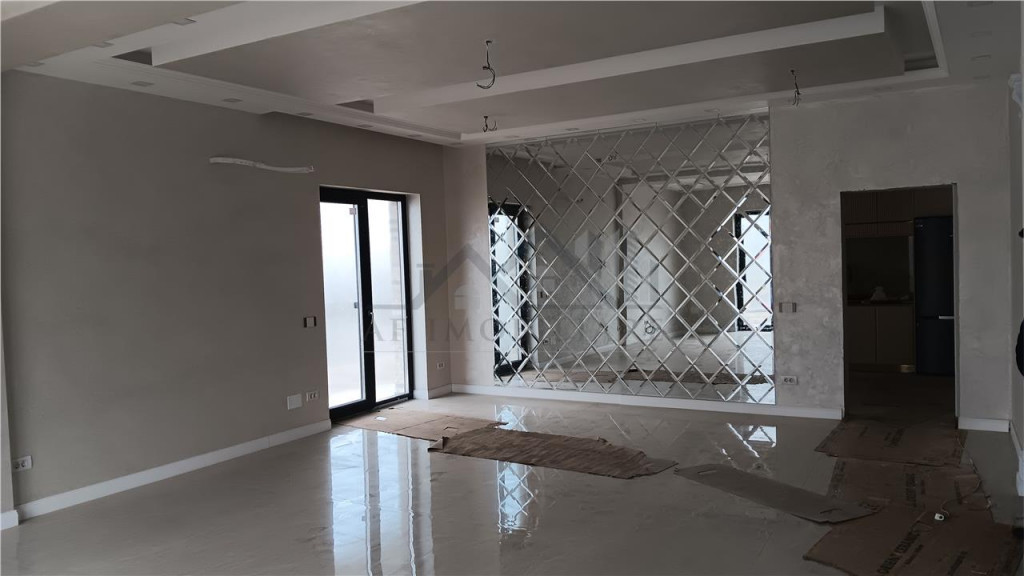 Compartimentare: living 60mp, 4 dormitoare de cate 25mp fiecare,dresing 25mp, bucatarie de 30mp,cu acces la o debara de 20mp si intarea in beci, 3 baii, beci, parter doua terase mari, la etaj balcom mare tip terasa cu camera anexa. Inaltimea camerelor este de 3,10m