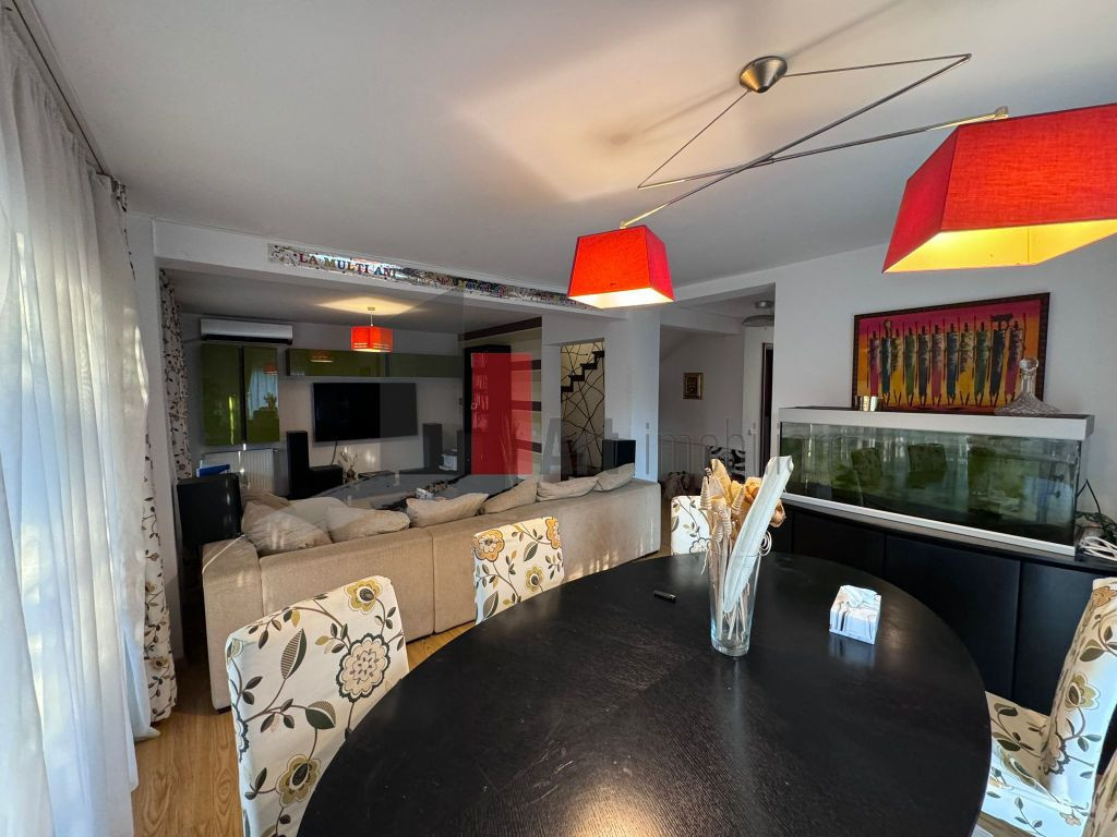 Vă prezentăm o proprietate deosebită, construită integral din beton, amplasată într-o zonă rezidențială liniștită și bine conectată la București – Austrian Village, Crevedia. Casa este spațioasă, bine compartimentată și se vinde complet mobilată și utilată, exact ca în fotografii, fiind gata de mutat . Date generale: Tip locuință: Duplex Suprafață utilă: 240 mp Teren: 457 mp An construcție: 2010 Regim: Parter + Etaj + Pod mansardat open-space Compartimentare: Living luminos și spațios Bucătărie complet mobilată și utilată 3 dormitoare generoase 3 băi moderne Mansardă open-space – ideală pentru relaxare, birou sau spațiu de joacă 3 balcoane mari + terasă acoperită Garaj încăpător cu acces facil Dotări și beneficii: Construcție din beton Încălzire prin centrală pe gaz Canalizare, gaze, apă curentă 4 aparate de aer condiționat Curte spațioasă, amenajată, dotată cu sistem de iluminare și irigații automate Se vinde complet mobilată și utilată – se vor lua doar obiectele personale Zonă rezidențială liniștită, cu acces rapid către București Ideală pentru o familie care își dorește confort, spațiu și un cămin complet echipat