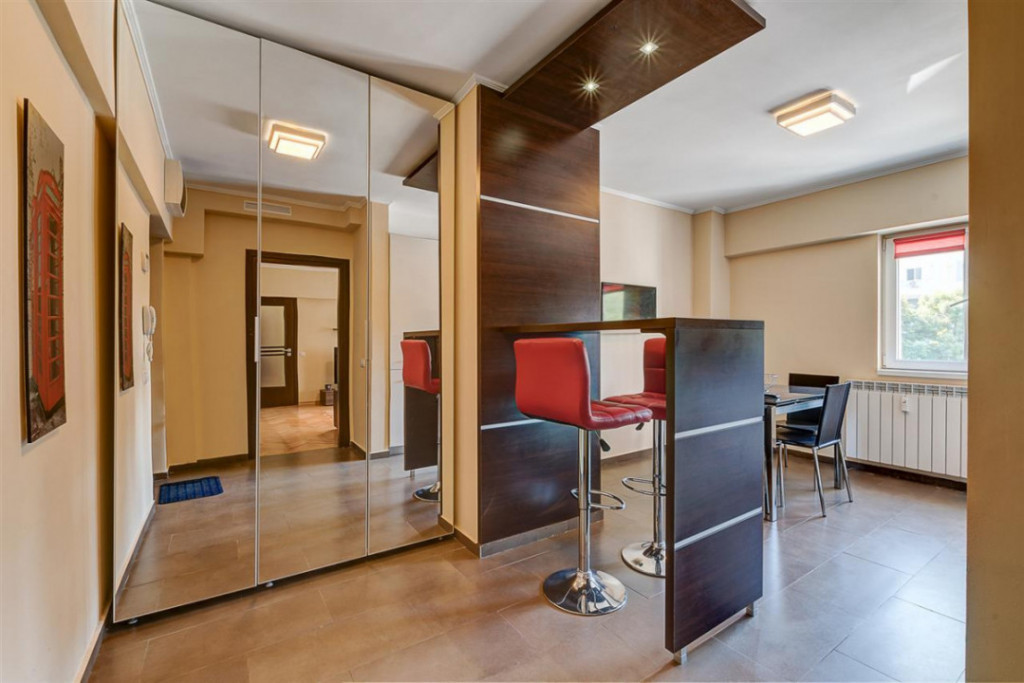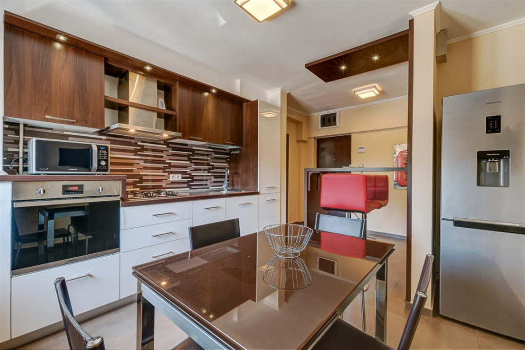 Locatie excelenta, apartament 2 camere, mobilat si utilat, etaj 1/4, liber si disponibil imediat pentru inchiriere pe termen lung, minim 12 luni. Va prezint spre inchirere un apartament cu 2 camere situat in cartierul Aviatiei pe strada Capitan Alexandru Serbanescu, langa hotel Crystal Palace si 5 minute fata de Mall Promenada (850m distanta). Zona ofera toate facilitatile de care ai nevoie: Parc Herastrau, Mijloace de transport in comun, Metrou ''Aurel Vlaicu'' la 700m distanta, Piata ''Aurel Vlaicu'', acces facil catre centrul orasului. In imediata apropiere a imobilului exista banci, farmacii, market-uri, terase, restaurante, cafenele, Mall-uri. Amplasat intr-un imobil cu 4 niveluri, construit in anul 1995 si reabilitat termic, apartamentul este situat la etajul 1/4, are o suprafata de 65 mp si o compartimentare semidecomandata. Imobilul este pozitionat stradal iar vederea apartamentului este pe spate. Renovat in urma cu cativa ani apartamentul dispune de tamplarie pvc cu geam termopan iar pardoselile din camere sunt placate cu parchet din lemn natural. Este dotat cu un 1 aparat de aer conditionat si echipat cu doua boilere Ariston ( unul la bucatarie si unul la baie) pentru independenta la apa calda. Apartamentul este complet mobilat si utilat. Livingul dispune de canapea tip coltar ( extensibila), corpuri de biblioteca ce incadreaza un perete placat cu piatra naturala, televizor smart. Dormitorul este complet mobilat pat matrimonial si saltea noua, dressing spatios, comoda, noptiera si TV. Bucataria este mobilata si utilata cu plita cu gaz si cuptor, cuptor cu microunde, hota, frigider. Apartamentul beneficiza de un hol generos la intrare dotat cu un dulap generos pentru depozitare. Balconul cu acces din living este inchis cu tamplarie pvc cu geam termopan. Baia este amenajata si echipata cu toate obiectele sanitare si masina de spalat rufe. Abonament activ la cablu TV si internet - DIGI- Apartamentul este liber si disponibil imediat pentru inchiriere. Nu este Pet-friendly. Contract minim 12 luni. Id intern: MA20015