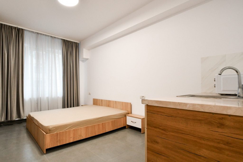Daca doriti o oportunitate de investitie pentru inchiriere cu amortizare rapida (vara in regim hotelier si iarna la studenti) sau pentru utilizare personala, rezidential, de vacanta, birouri sau cabinete, va oferim spre achizitie o garsoniera cu baie si chicineta in suprafata utila totala de 19,80 mp, pozitionata la parter intr-un bloc compus din S+P+3 Etaje. Imobilul este situat in randul 2 de la B-dul. Mamaia (in spatele hotelului Bulevard, vis a vis de Lake View), este ferit de zgomotul traficului, dar totusi cu acces rapid in bulevard si dispune de o pozitionare excelenta fata de cele mai importante zone ale orasului – statiunea Mamaia (800 m), plaja 3 Papuci/plaja Reyna (1,1 km), campus universitar Ovidius (2,6 km), City Park Mall (1,7 km), parcul Tabacarie (1,8km), delfinariu (800 m), supermarket (800 m), centru istoric Constanta (4,6 km), Vivo Mall si centrul comercial Tom (4,5 km) si plaja Modern/Neversea (3,9 km). De asemenea exista si posibilitatea de deplasare cu mijloace de transport in comun, statia acestora fiind la numai 130 m. Garsoniera se preda mobilata conform fotografii si dispune de urmatoarele dotari si finisaje: TV LCD Samsung, minifrigider, cuptor cu microunde, aparat de aer conditionat 9000 BTU, instalatii electrice cupru asistate de tablou cu sigurante automate, prize si intrerupatoare modulare, instalatii internet si cablu TV prin fibra optica, instalatie gaze naturale, centrala termica Ferroli 24KW in condensare si calorifere otel, instalatii alimentare apa si instalatii termice PPR, baia dotata cu dus, rigola scurgere si paravan sticla, vas WC, ventilaror aerisire, lavoar cu mobilier si oglinda, gresie si faianta portelanate, usa interior celulara, usa metalica la intrare, parchet laminat, tamplarie PVC Salamander, zugraveli lavabile (alb) si acces securizat cu interfon. Pret 49.500€ Pentru aceasta proprietate nu se percepe comision de la cumparator! Id intern: P134
