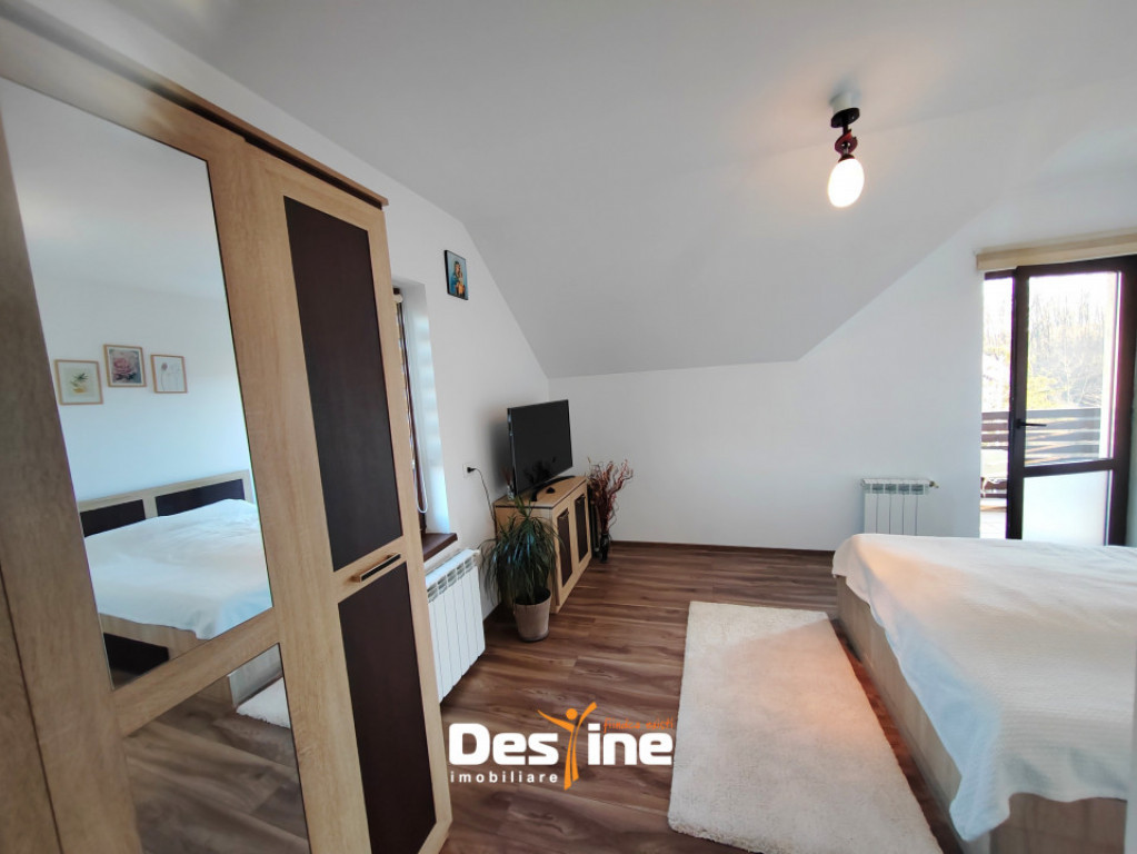 *** DESTINE IMOBILIARE vă prezintă următoarea proprietate spre vânzare: ** Casă individuală 4 camere - BÂRNOVA * Preț: 219.000 €. >>> INFORMATII UTILE generale: - Casa este finalizată în anul 2019 - Construită în regie proprie - Regimul de inaltime este: P+1+POD - Suprafață UTILĂ este de 133,11 mp + 2 balcoane 7,03 mp - TEREN in suprafata de 380 mp -TOATE UTILITATILE, inclusiv canalizare >>> DETALII despre constructie: - fundatie din beton armat - centuri si stalpi de sustinere din fier beton - structura din cărămidă Porotherm - acoperis tigla metalica Bilka - izolatie exterioara din polistiren expandat - Gard din beton armat cu inchidere de lemn tratat >>> COMPARTIMENTARE: ~ PARTER : living și bucătărie open-space, baie cu geam, hol, terasă, dresing, cameră tehnică ~ ETAJ : 3 dormitoare, baie cu geam, hol, 2 balcoane. ~ POD IZOLAT, pentru depozitare >>> CARACTERISTICI importante: - MOBILATA SI UTILATA COMPLET - Centrală termică, radiatoare din aluminiu si distribuitoare pentru fiecare calorifer - Scări placate cu lemn masiv - Sistem de supraveghere video+alarmă - Curte amenajată cu pomi, plante ornamentale si sistem de irigatie - Cabana de depozitare in spatele casei construita din structura de lemn - Sistem fotovoltaic de 5kw - Apa pluvială este colectată prin jgheaburi, stocată în bazin de 3 mc și utilizată prin hidrofor pentru grădină sau gospodărie. * Casa a fost construită cu materiale de calitate, în concordanță cu proiectul si planul de construcție, cu atentie sporita la detalii si finisaje. ** Imobilul se află într-o zonă liniștită, cu aer curat și priveliște deosebită , la DOAR 2,7km distanță față de Hanul Trei Sarmale, Bucium. > Pentru vizionări sau informații suplimentare: -> 0750.299.322 - Atasiei Mihaela *Cod ofertă : P4646 ???? Această proprietate poate fi achiziționată prin intermediul unui credit, iar noi suntem aici să vă facilităm acest proces. Datorită parteneriatelor noastre strânse cu cele mai importante instituții bancare, vă putem oferi asistență în obținerea finanțării potrivite pentru dumneavoastră. ✨Nu ezitați să ne contactați pentru mai multe informații despre opțiunile de finanțare disponibile! ✨ Id intern: P4646