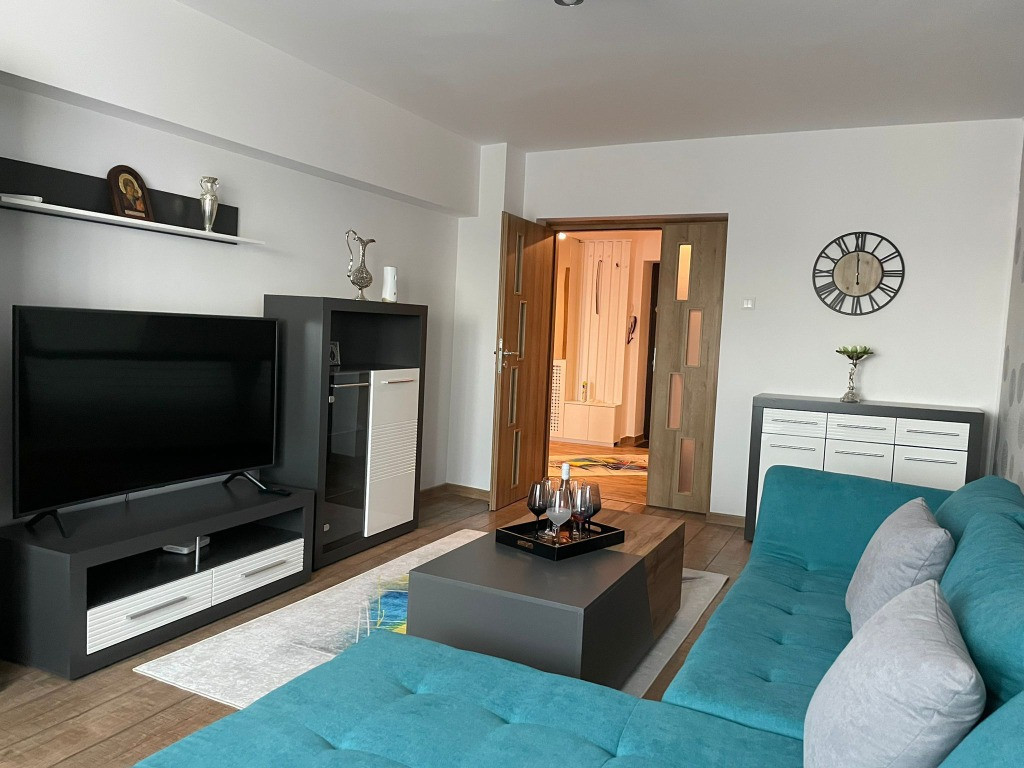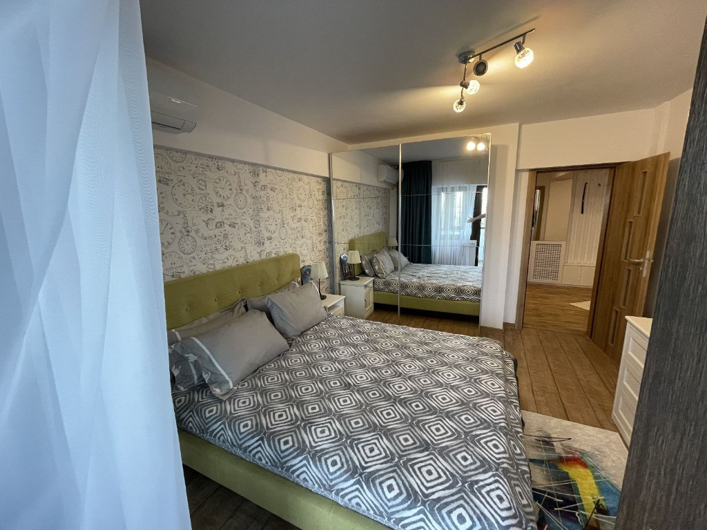 Pe Bdul.Unirii, va propunem spre inchiriere un Apartament de 2 camere, complet decomandat, situat la et.6, Proaspat renovat LUX, scara curata, vedere frumoasa.,zona de entertainment cu terase, toate facilitatiile: scoala, gradinita, biserica, magazine, etc, avand o suprafata utila de cca. 60 mp, cu 2 camere, 1 baie, 2 balcoane, hol mare patrat, debara, balcoane inchise, termopan, decomandat, dotat full: masina de spalat rufe, uscator rufe, ac. pt. incalzire si racire, micro, cuptor electric, hota, plita electrica, combina frigorifica, expresor cafea, tv-uri smart samsung, mobila din mdf vopsit, coltar extensibil cu lada, pat din catifea cu lada, dresinguri, contract anaf, fara animale, etc. Parcare . Pentru mai multe informatii, sau stabilirea unei vizionari, nu ezitati, a ne contacta!