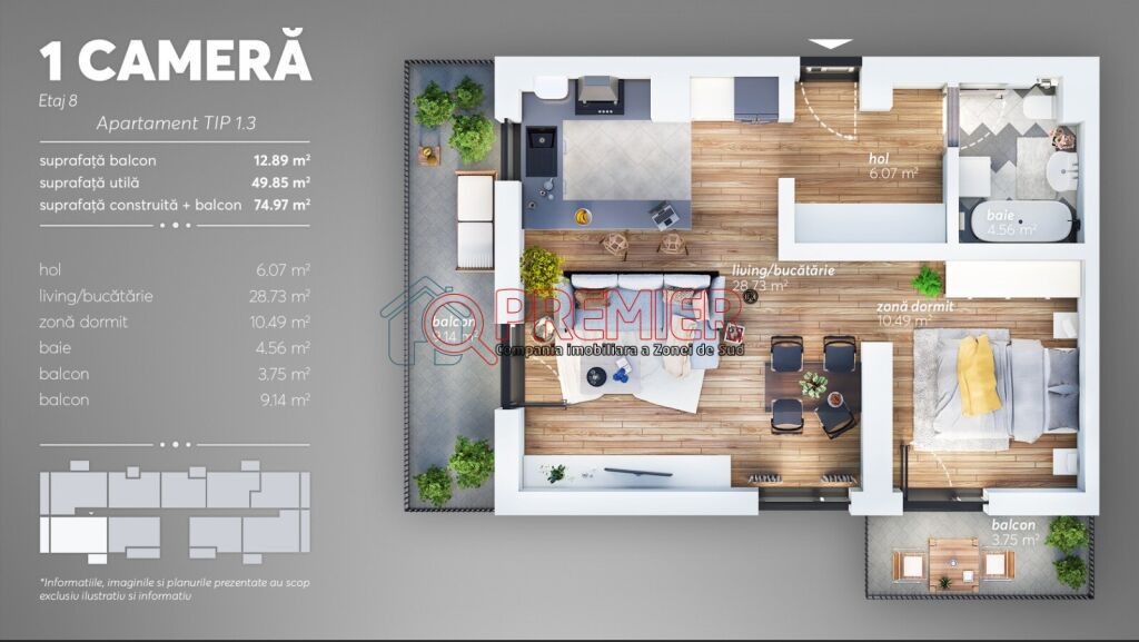 Apartament cu 2 camere, complet mobilat și utilat, disponibil pentru închiriere/vânzare. Locuința este luminoasă și bine compartimentată, fiind compusă din living spațios, dormitor confortabil, bucătărie separată, baie și balcon. Apartamentul este dotat cu mobilier modern și electrocasnice necesare pentru un trai confortabil: frigider, aragaz/plită, cuptor, mașină de spălat și televizor. Bucătăria este complet utilată, iar livingul oferă un spațiu ideal pentru relaxare. Imobilul se află într-o zonă liniștită, cu acces facil la mijloace de transport, magazine, supermarketuri, farmacii și alte puncte de interes. Apartamentul este ideal pentru un cuplu sau o persoană care își dorește confort și acces rapid către facilitățile orașului. Pentru mai multe detalii sau pentru programarea unei vizionări, nu ezitați să ne contactați. Serviciul nou oferit de PREMIER Imobiliare! Solicita acum VIZIONARE ONLINE pentru aceasta proprietate! COMISION 0% Această proprietate se poate achiziționa prin orice tip de credit bancar. Departamentul nostru financiar Premier Credit Hub vă stă la dispoziție GRATUIT (comision 0%) pentru: - identificarea celei mai bune soluții de finanțare; - întocmirea dosarului bancar complet; - obținerea rapidă a creditului necesar achiziției. Beneficiați de un serviciu ALL IN ONE, cu acces direct la ofertele tuturor băncilor comerciale din România. Se acceptă inclusiv venituri din străinătate, astfel încât fiecare client să poată cumpăra în cele mai avantajoase condiții. Solicitați acum o simulare de credit direct din anunț sau cereți detalii consultantului Premier Imobiliare!