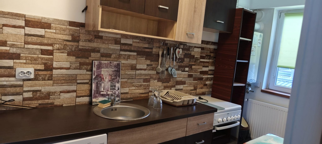garsonieră confort 1 utilata, centrala termica și aer conditionat, mobilata complet, balcon. Toate condițiile, etaj 2 bloc rezidential. Chiria este in valoare de 400 euro plus garanție Anunțul este valabil pentru închirierea unei singure persoane. Exclus animale. Prețul nu este negociabil.garantia 450euro.