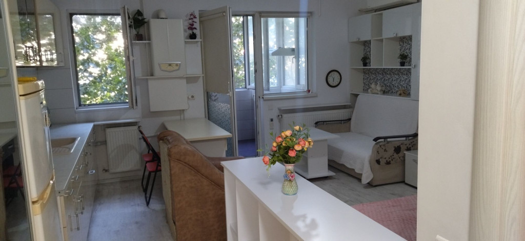 Garsoniera 34 mp mobilata utilata situată et 2 în str. Luica 166 în bloc cu magazinul Auchan. Diverse magazine la parter pitzerie ,mâncăruri spălătorie haine , salon frumusețe . Statie autobuz în fața blocului , în toate direcțiile. Blocul este construit nu de mult, bine întreținut , lift panoramic Preț 350 euro . + Garanție .